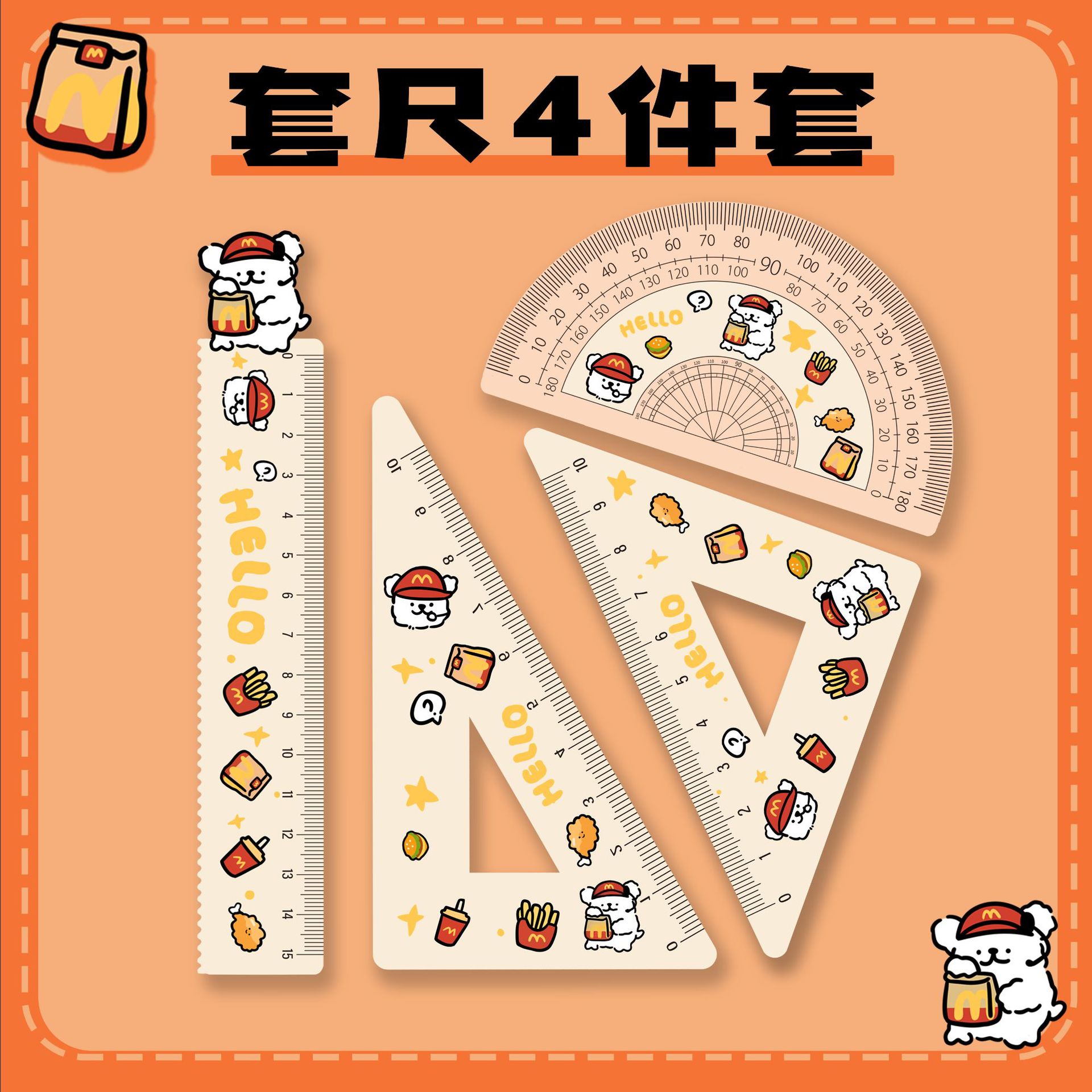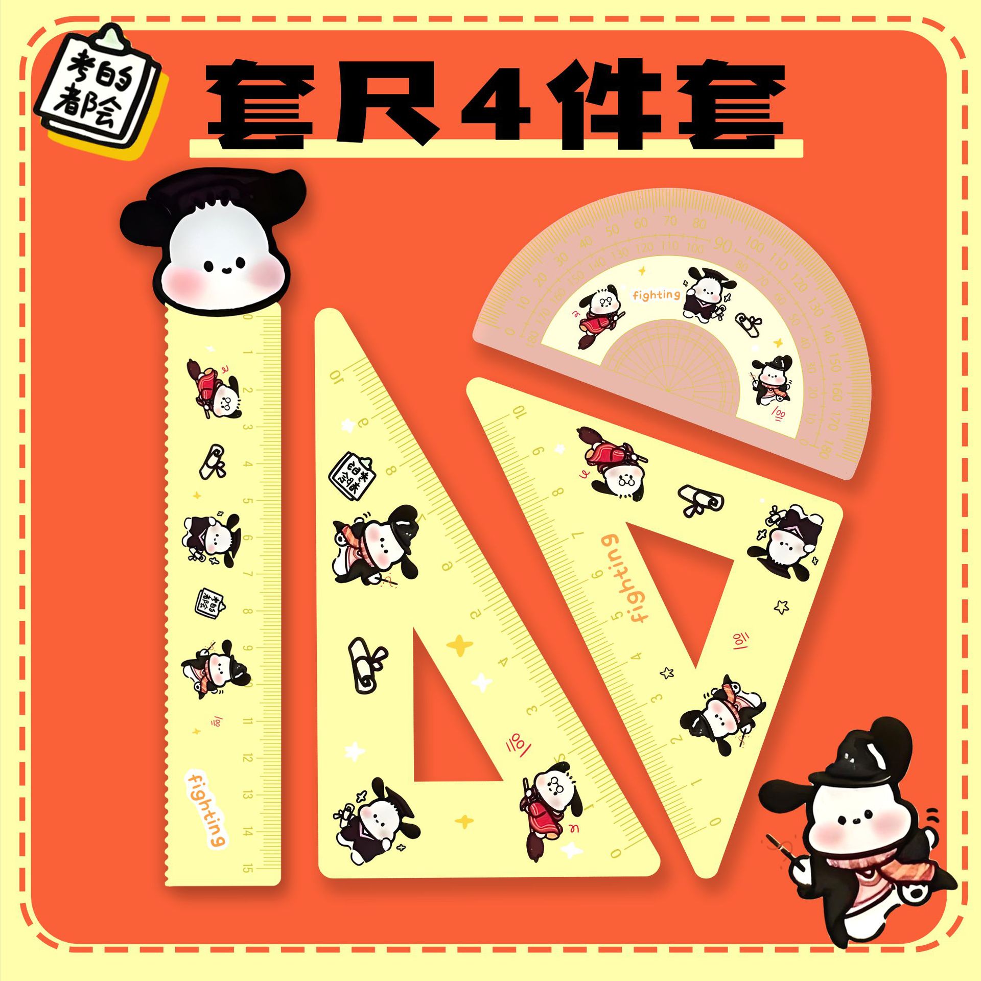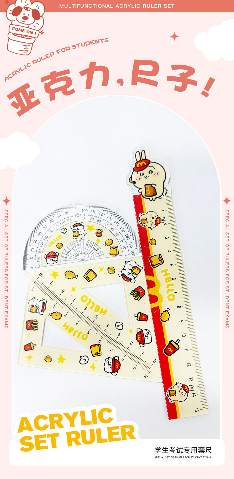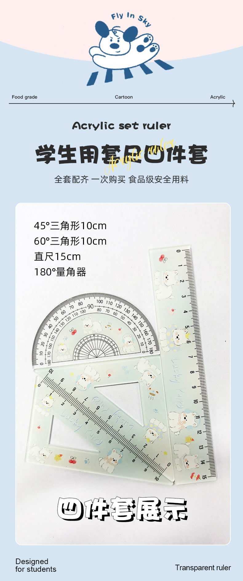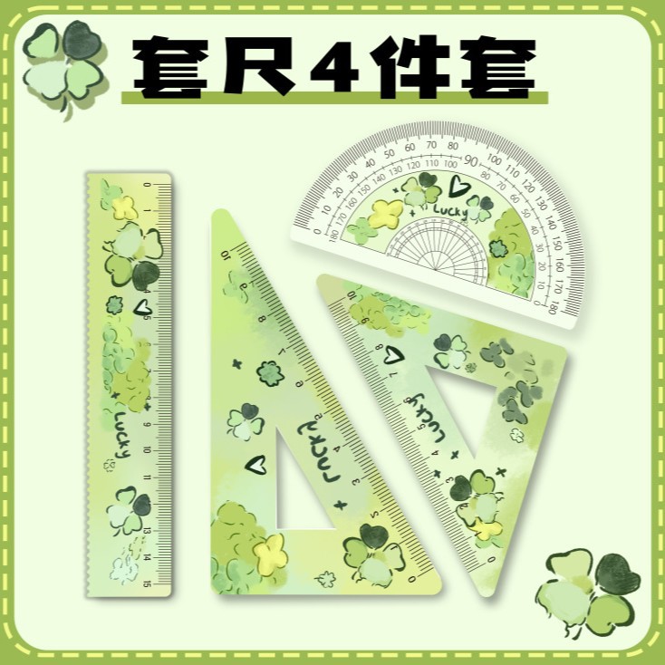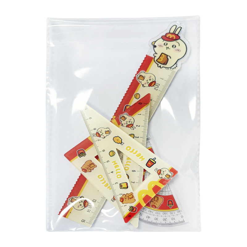 厂家直销亚克力15cm尺子四件套可爱三小只学生卡通学习文具套装