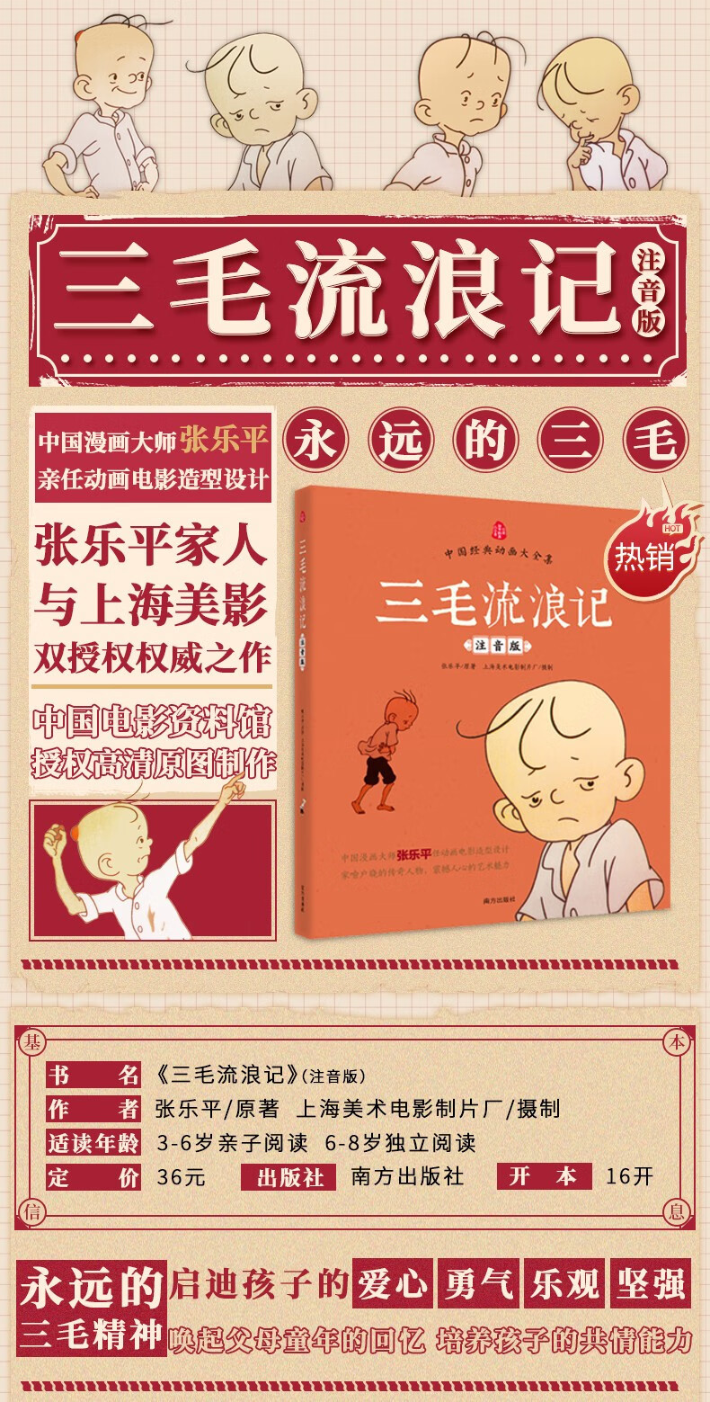 三毛流浪记注音彩图版张乐平着3-6岁儿童绘本幼儿图书0-3岁阅读 English | 投诉