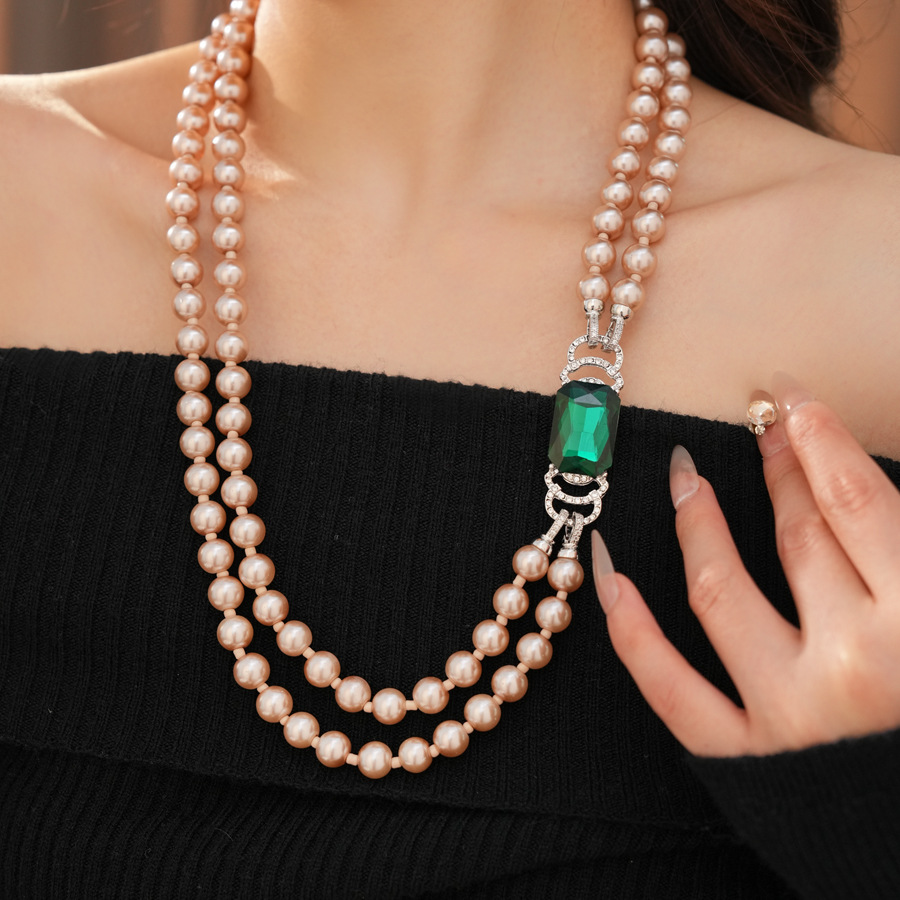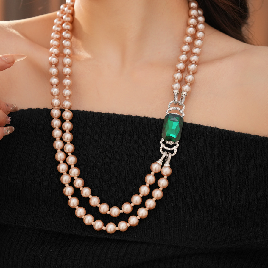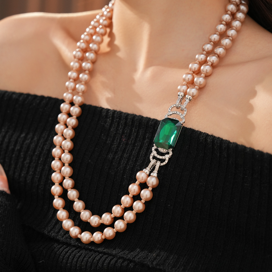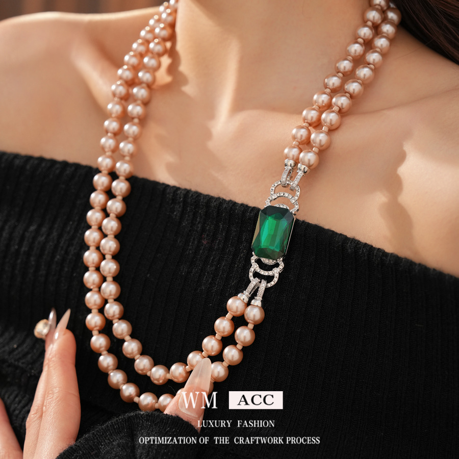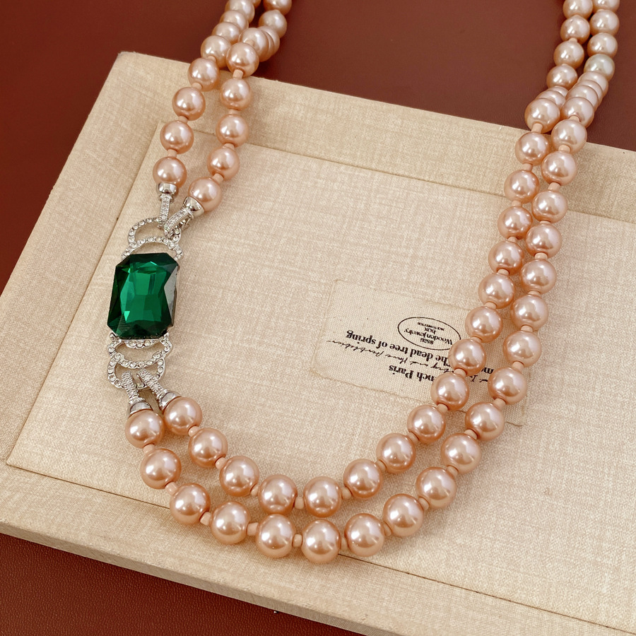 中古vintage镶钻方形双层串珠珍珠项链轻奢小众锁骨链首饰套装女 English | 投诉
