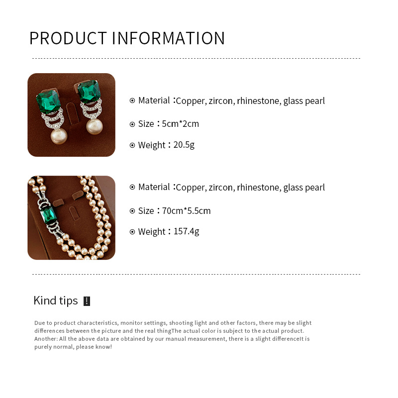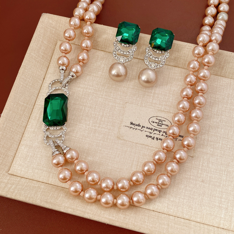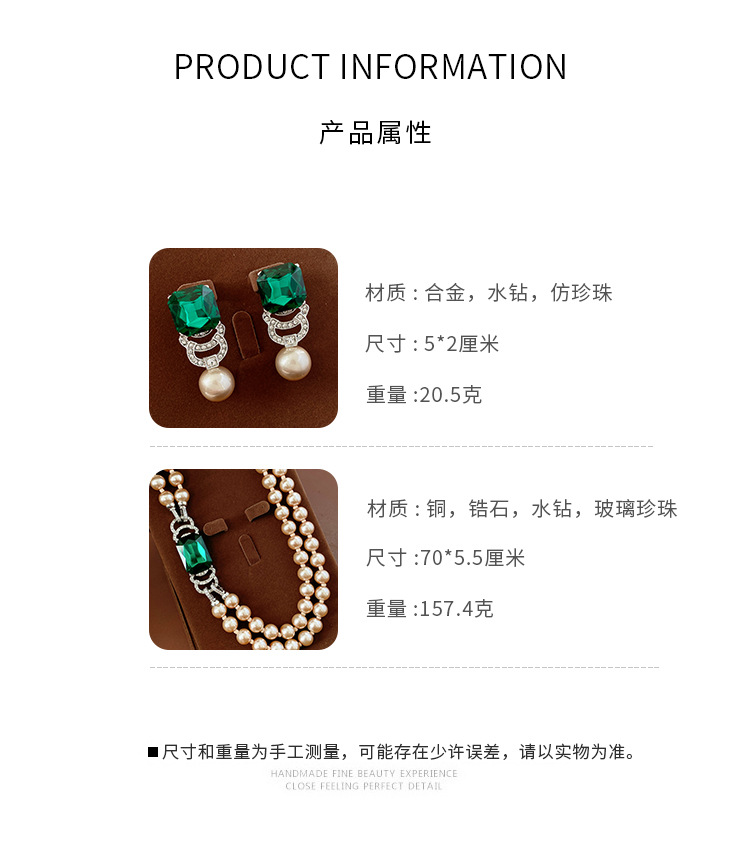 材质: 仿珍珠 镶嵌材质: 其它 坠子材质: 仿珍珠 套装组合: 耳饰+项饰 品牌: 微妙饰品厂 链子样式: 常规链 流行元素: 四边形 处理工艺: 镶钻 样式: 女式 货号: WE5855WN2260 产地: 义乌 图案: 圆形 颜色: 银针-银色-绿色,项链-银色-咖色-绿色 有可授权的自有品牌: 是 是否跨境出口专供货源: 是 上市年份/季节: 2025年冬季 风格: 复古 风格分类: 文艺复古 适用人群: 女式 商品类型: 饰品 重量: 0.02 kg/对