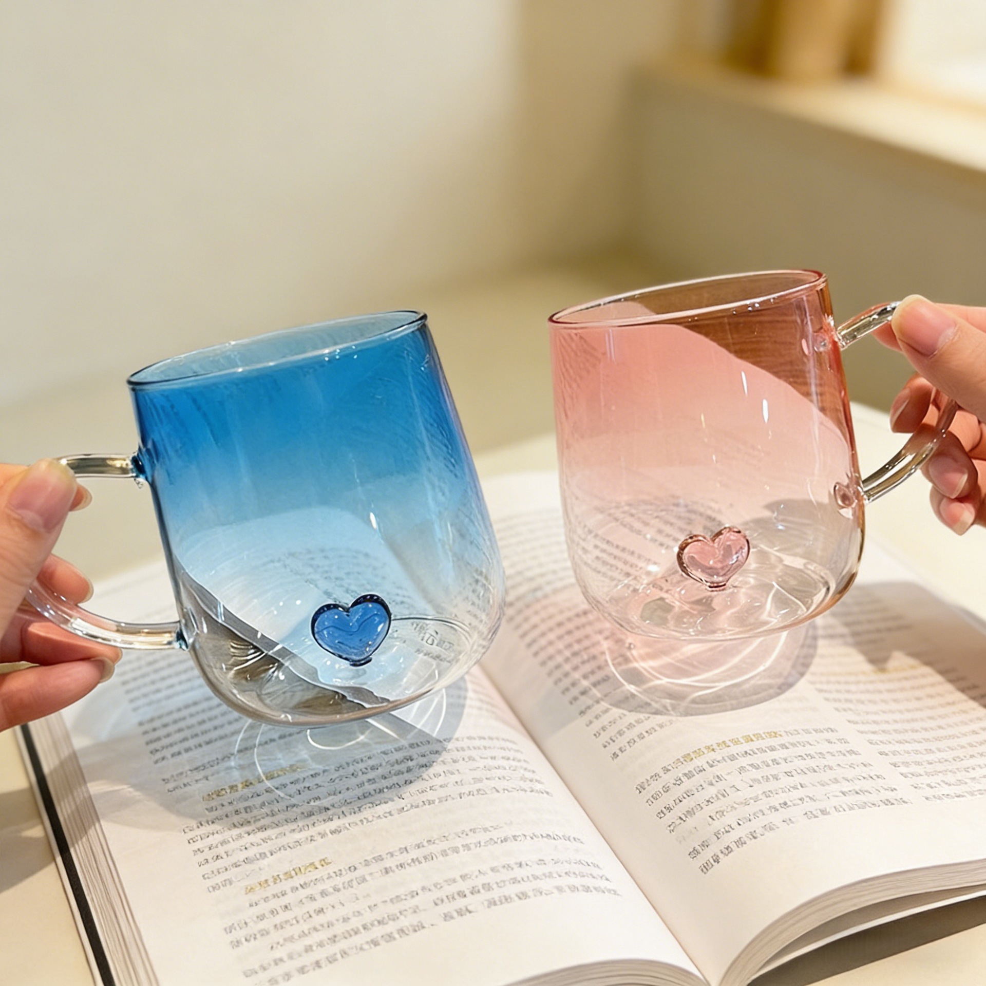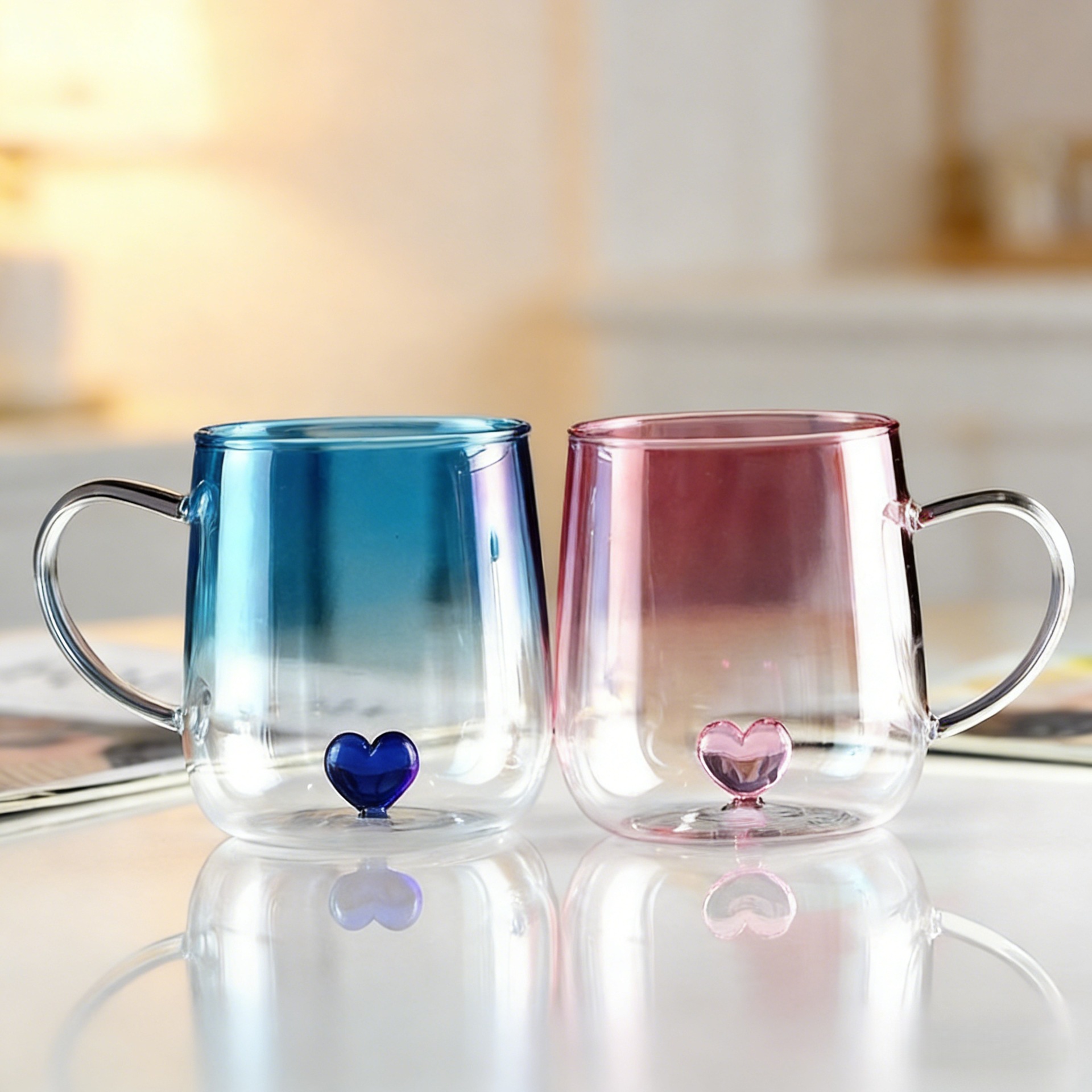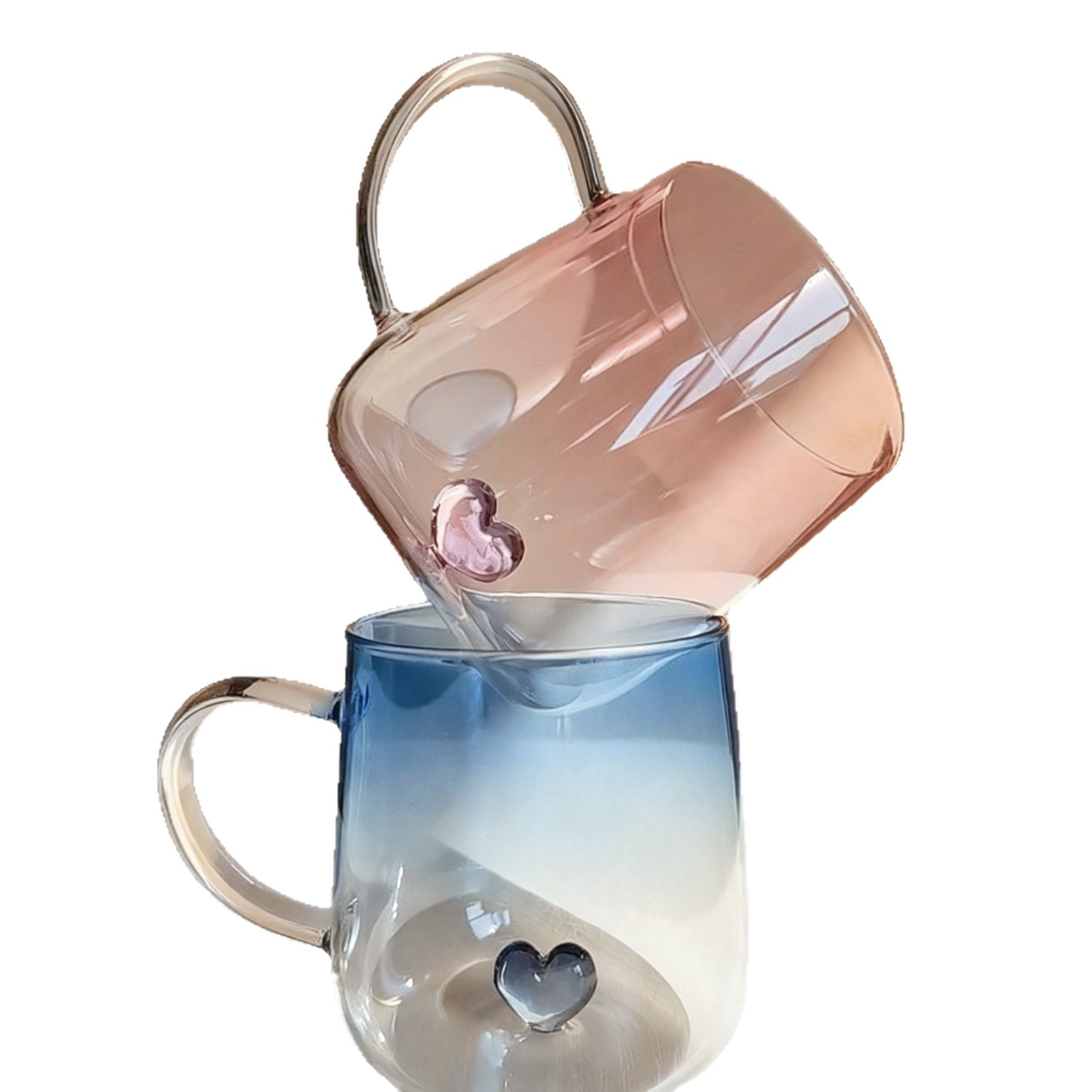 情侣杯高颜值玻璃杯透明渐变创意爱心高硼硅玻璃带把手爱心喝水杯