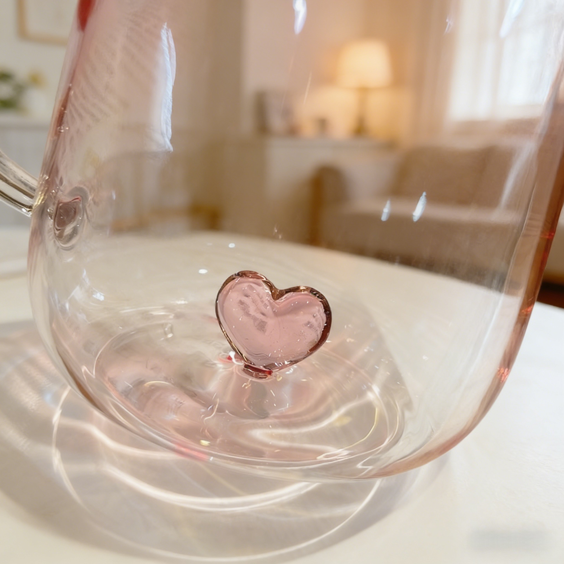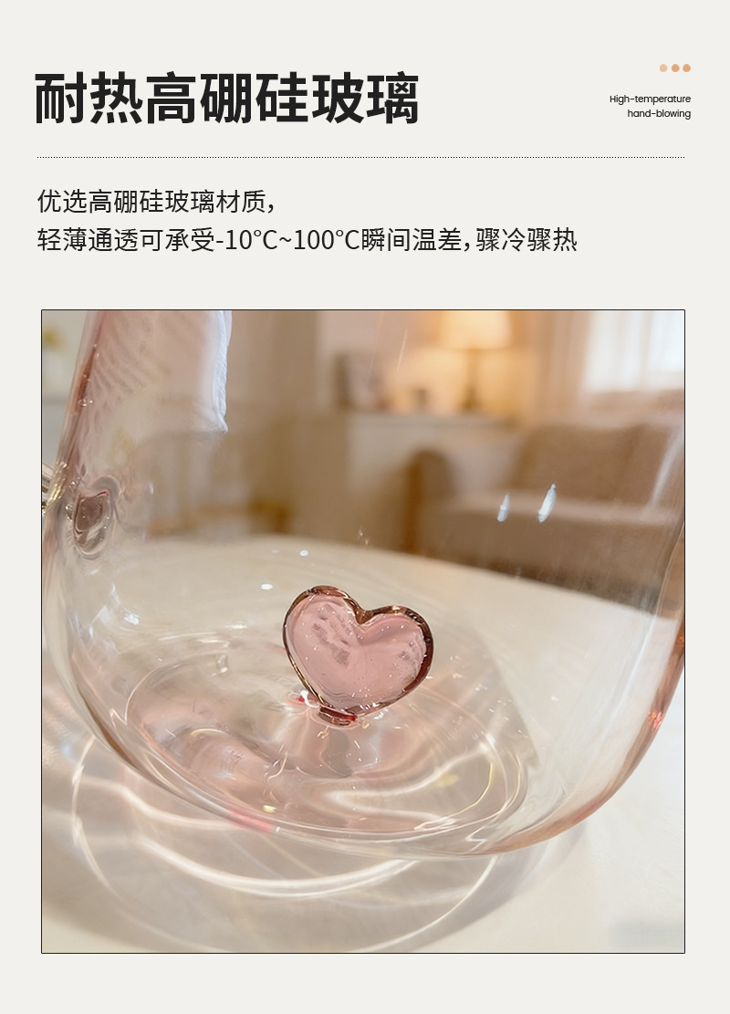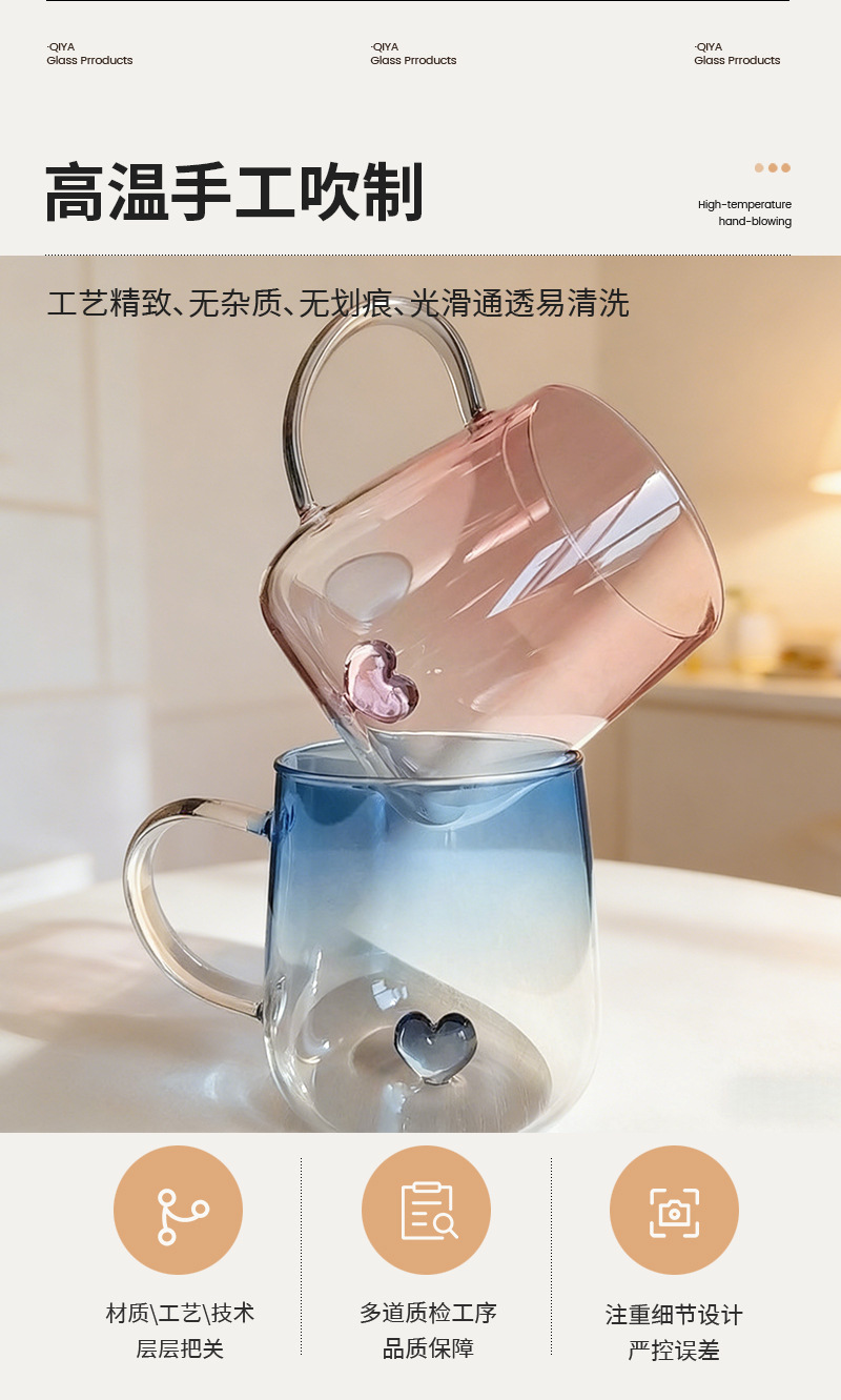 情侣杯高颜值玻璃杯透明渐变创意爱心高硼硅玻璃带把手爱心喝水杯 投诉