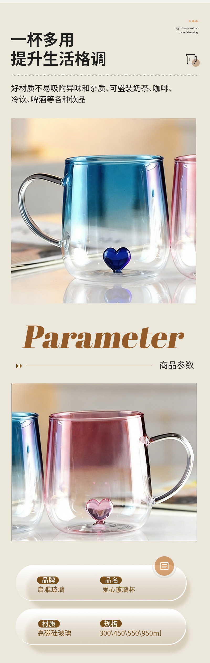 材质: 高硼硅玻璃 工艺: 人工吹制 产品类别: 水杯 结构: 双层 风格: 现代简约 加印LOGO: 可以