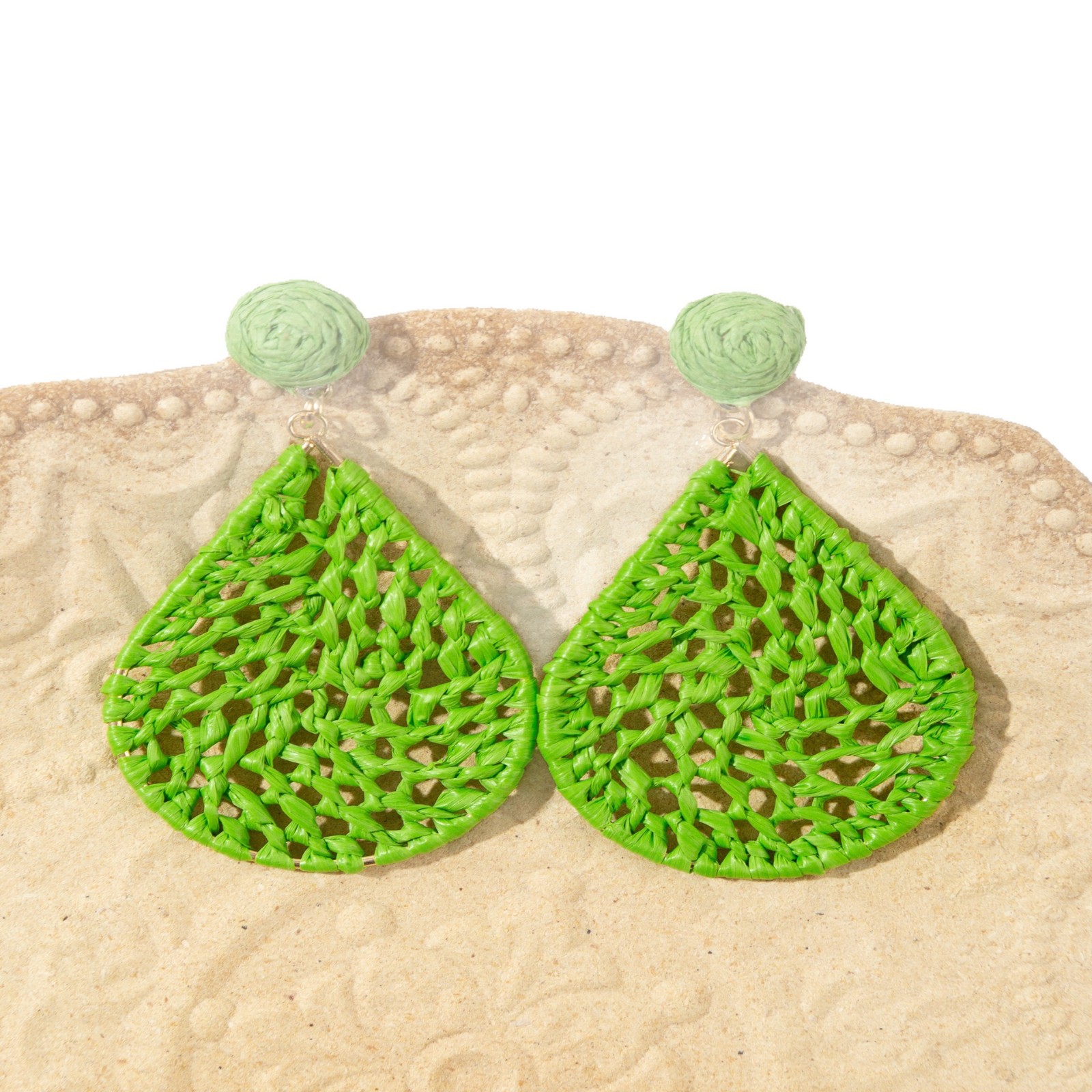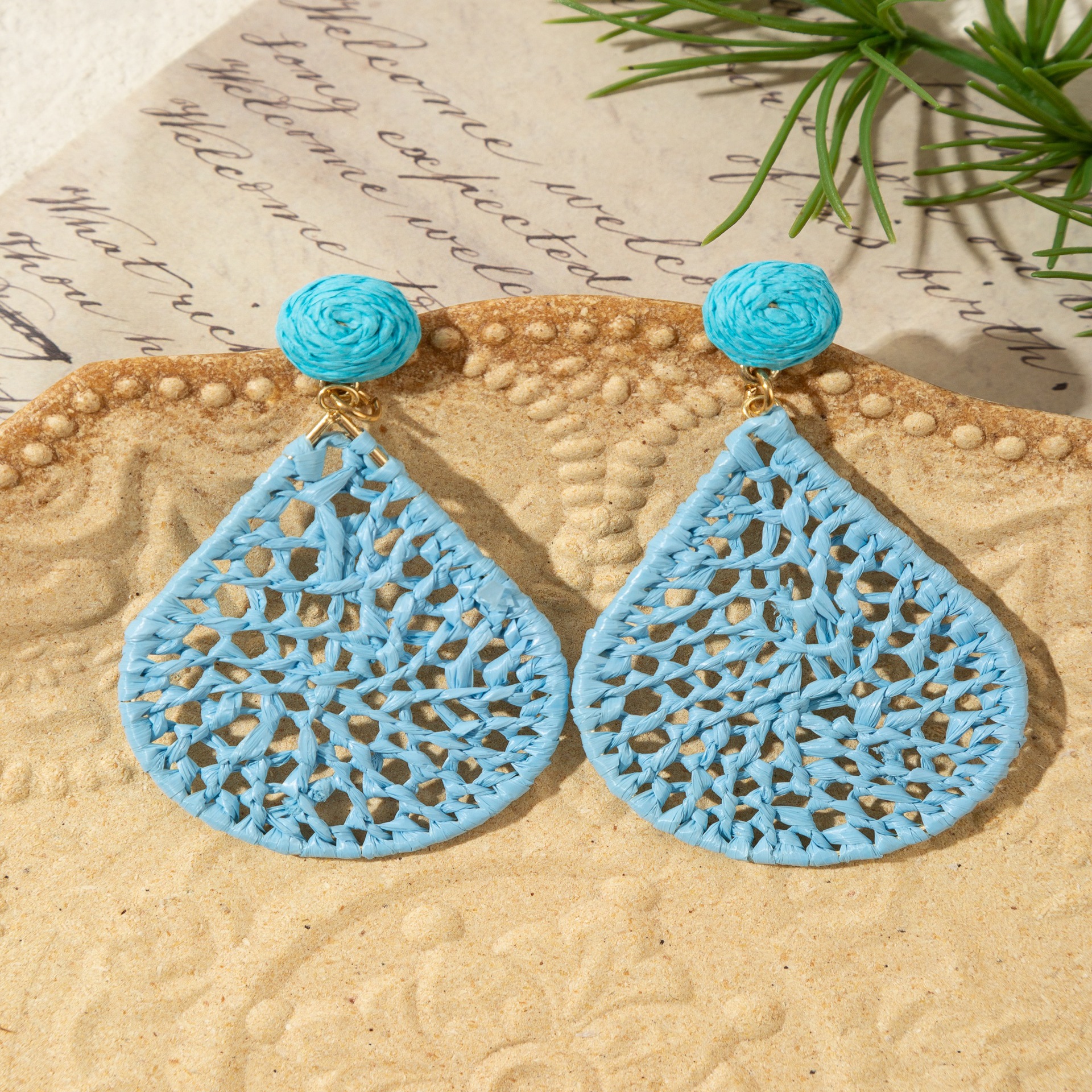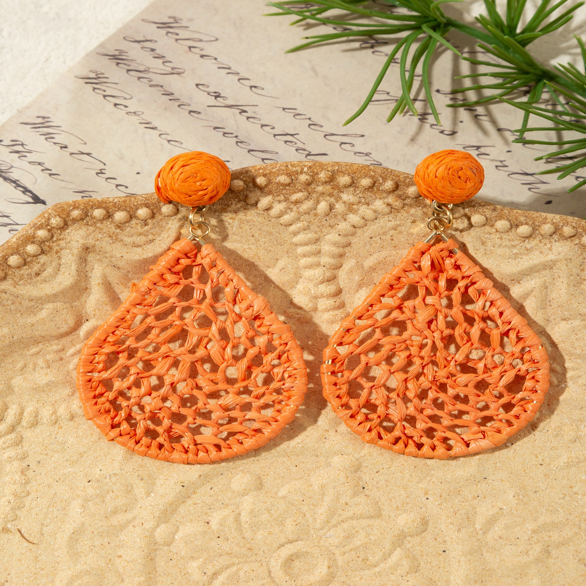材质: 拉菲草 处理工艺: 手工编织 品牌: 悠格 流行元素: 水滴 风格: 度假风 货号: E090 造型: 花卉 产地: 义乌 主要下游平台: 淘宝,京东,ebay,亚马逊,wish, 颜色: 绿色,黄色,天蓝色,花色,咖啡色,桔色 纯度: 925银 有可授权的自有品牌: 否 是否跨境出口专供货源: 是 上市年份/季节: 2025年秋季 耳针材质: 925银 风格分类: 清新甜美 主要销售地区: 非洲,欧洲,南美,东南亚,北美,中东,其 适用人群: 女式 流行元素分类: 自然 重量: 0.015 kg/包