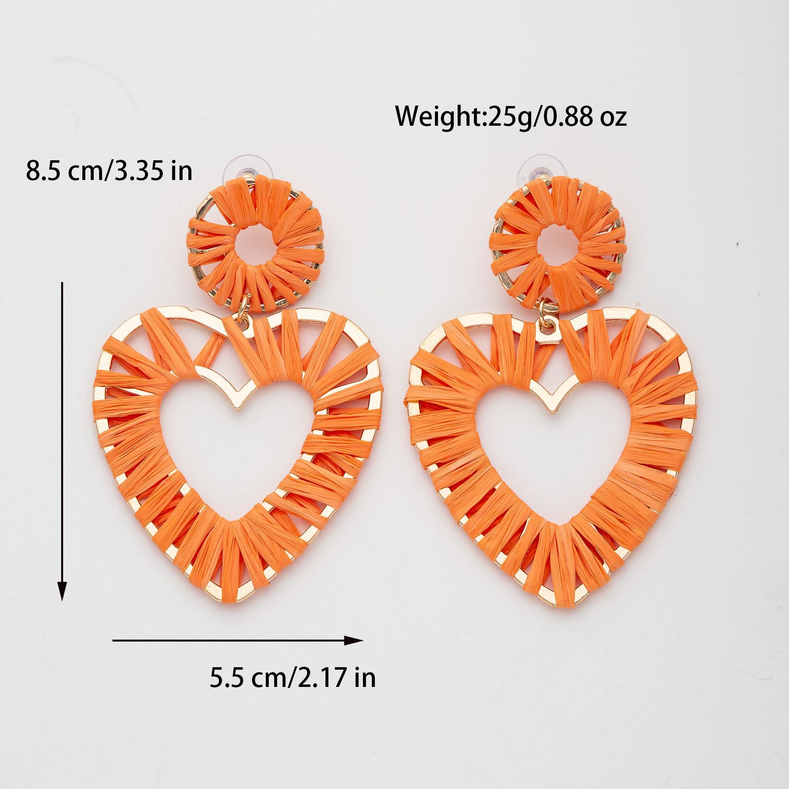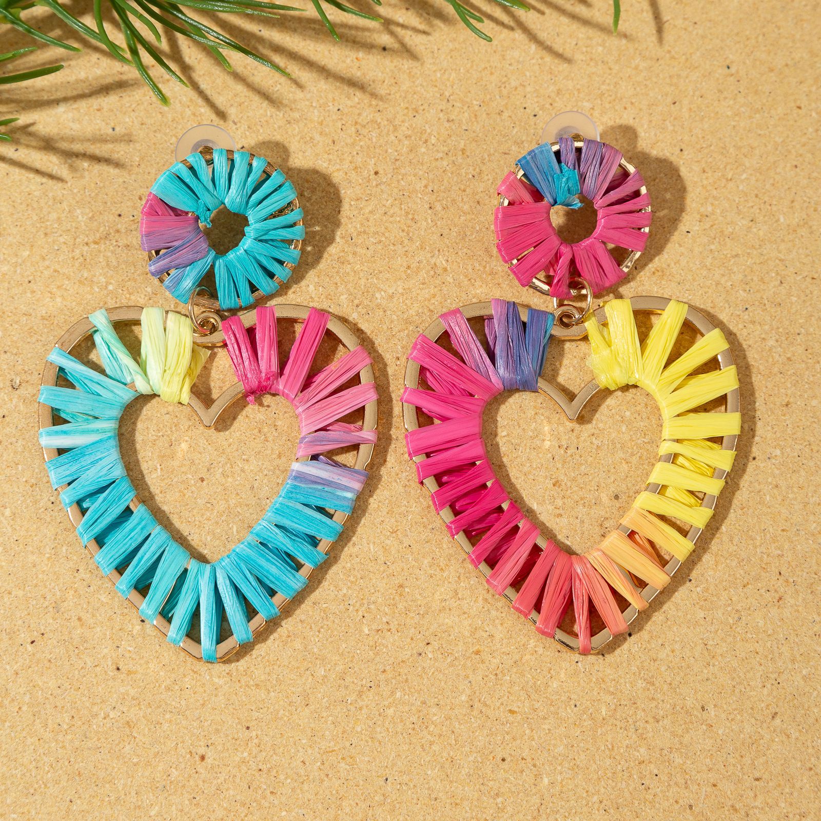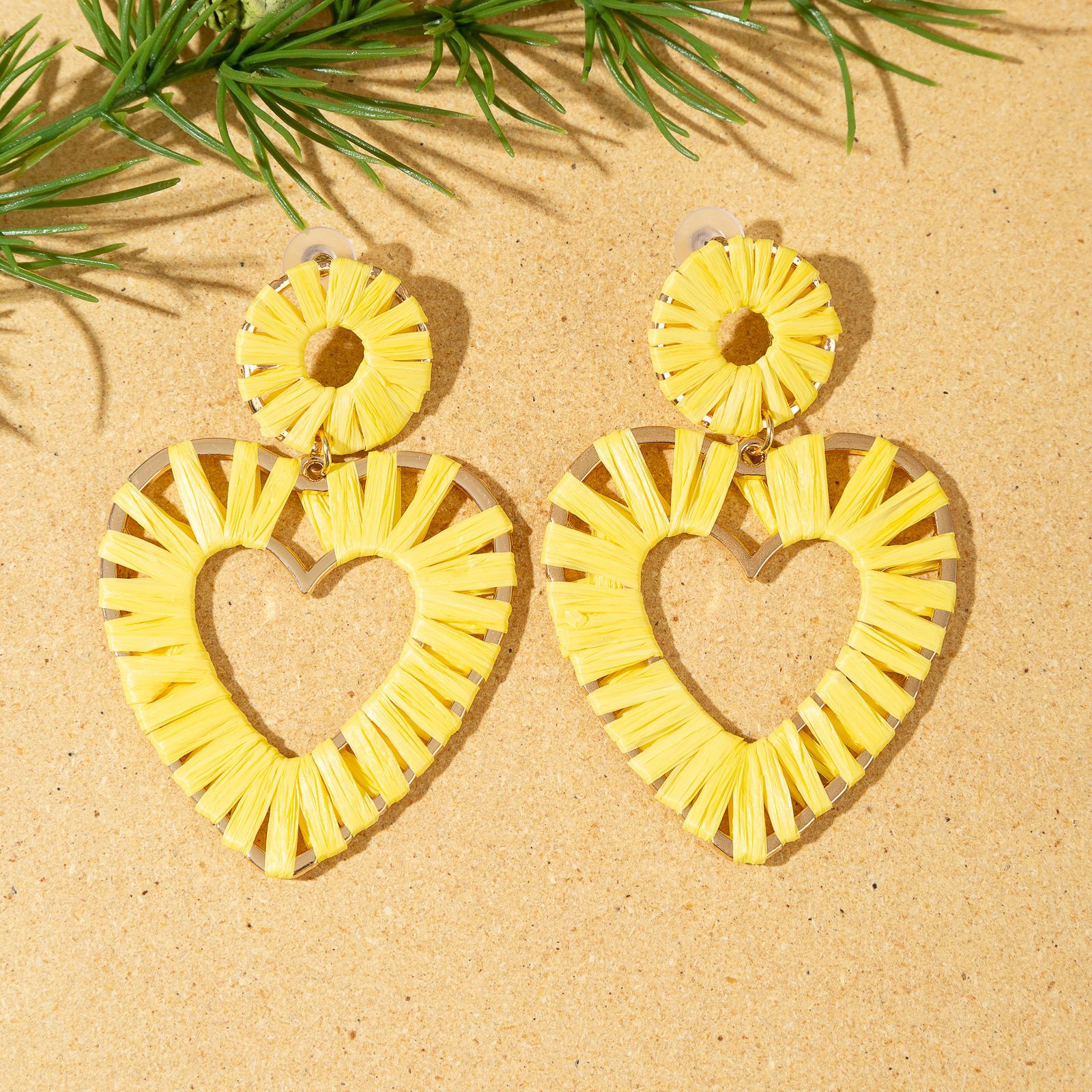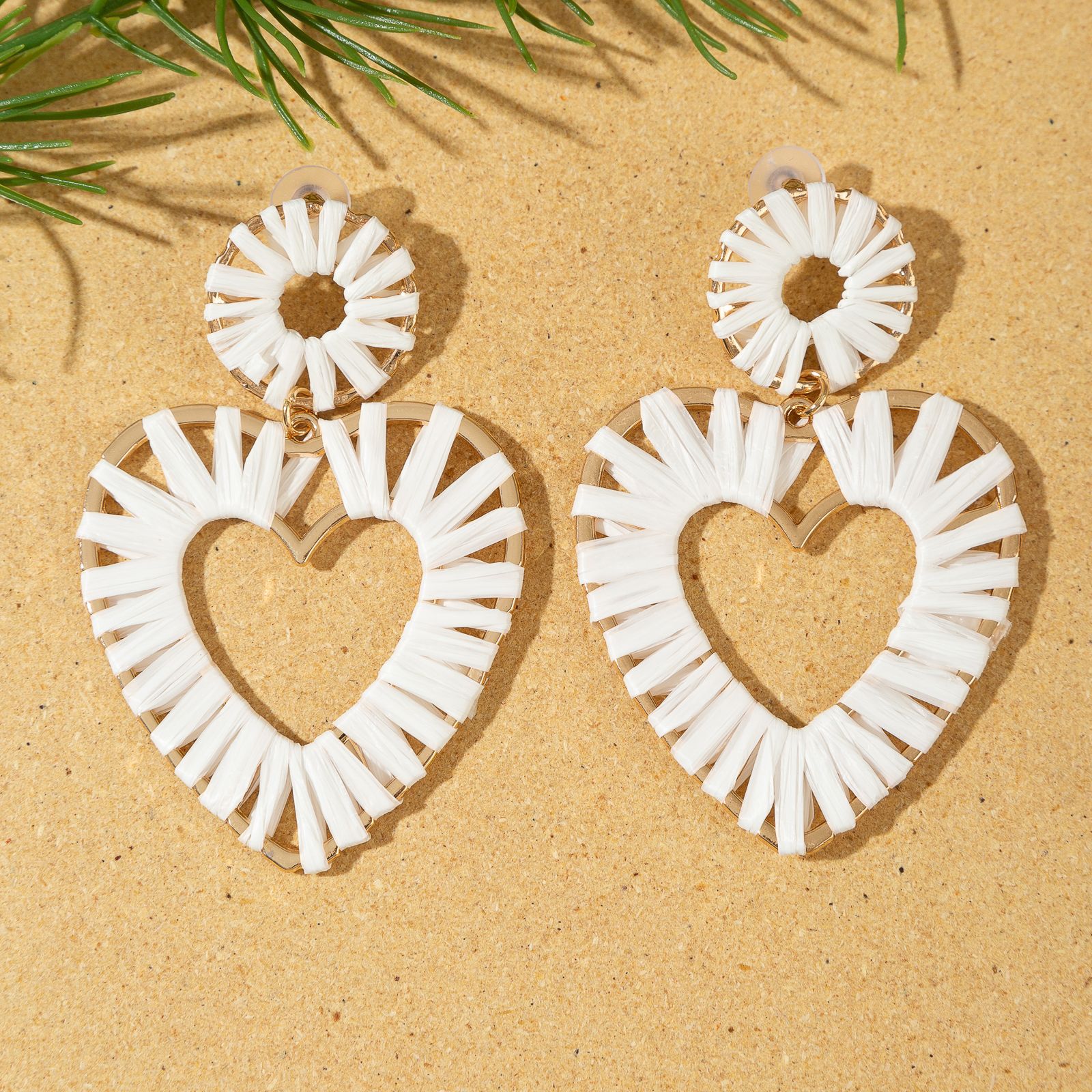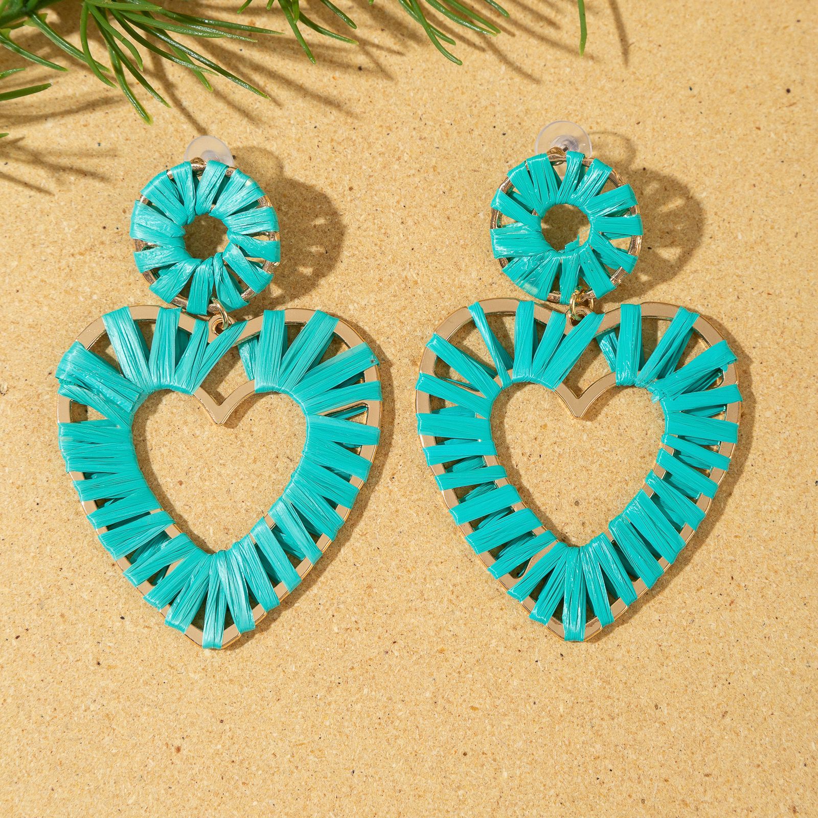 欧美时尚手工编织拉菲草桃心耳环海边度假风耳钉小众设计女士耳饰 English | 投诉