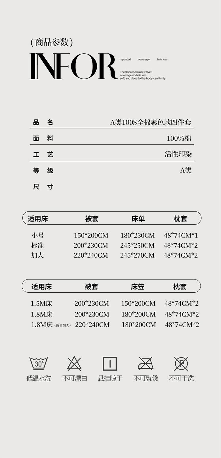 | 2.0床单款【被套220*240/床单245*270/枕套*2】四件套 | ¥30000 | 1000套可售 |
