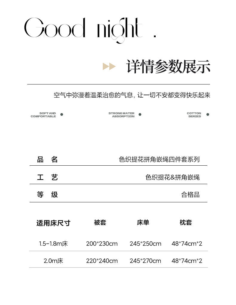 | 1.5米床笠款四件套:被套200*230cm | ¥20500 | 999999件可售 |