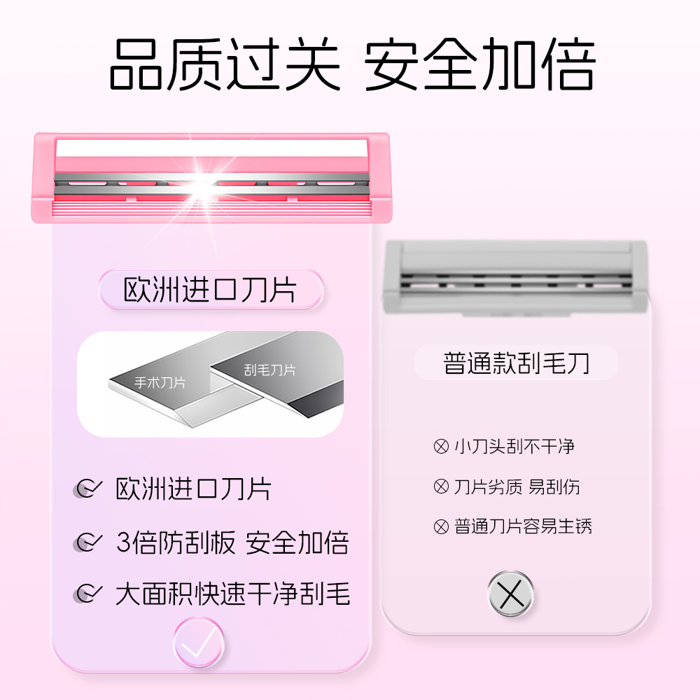 | 刀柄材质:TPR+PP | 刀片材质: 不锈钢 | 润滑条成分:富含维他命E和芦荟精华 |
