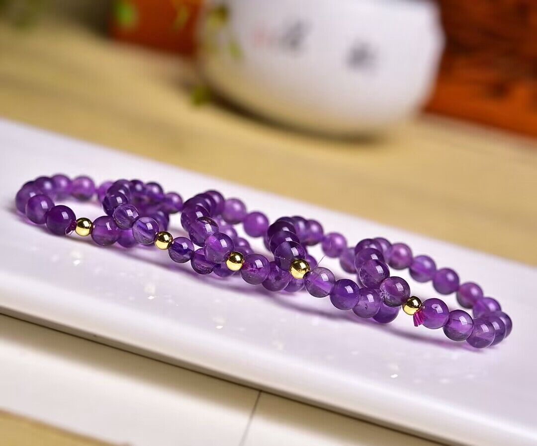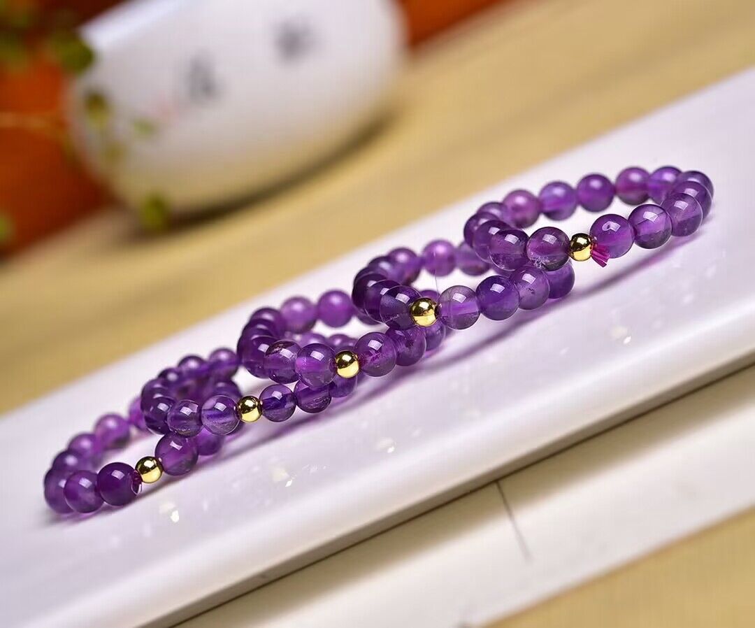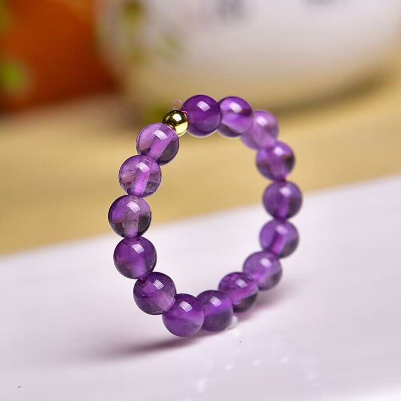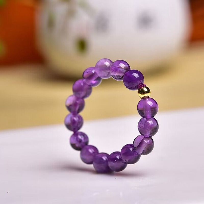 天然紫水晶圆珠戒指 经典款 DIY手工饰品配饰 男女戒圈时尚百搭 English | 投诉