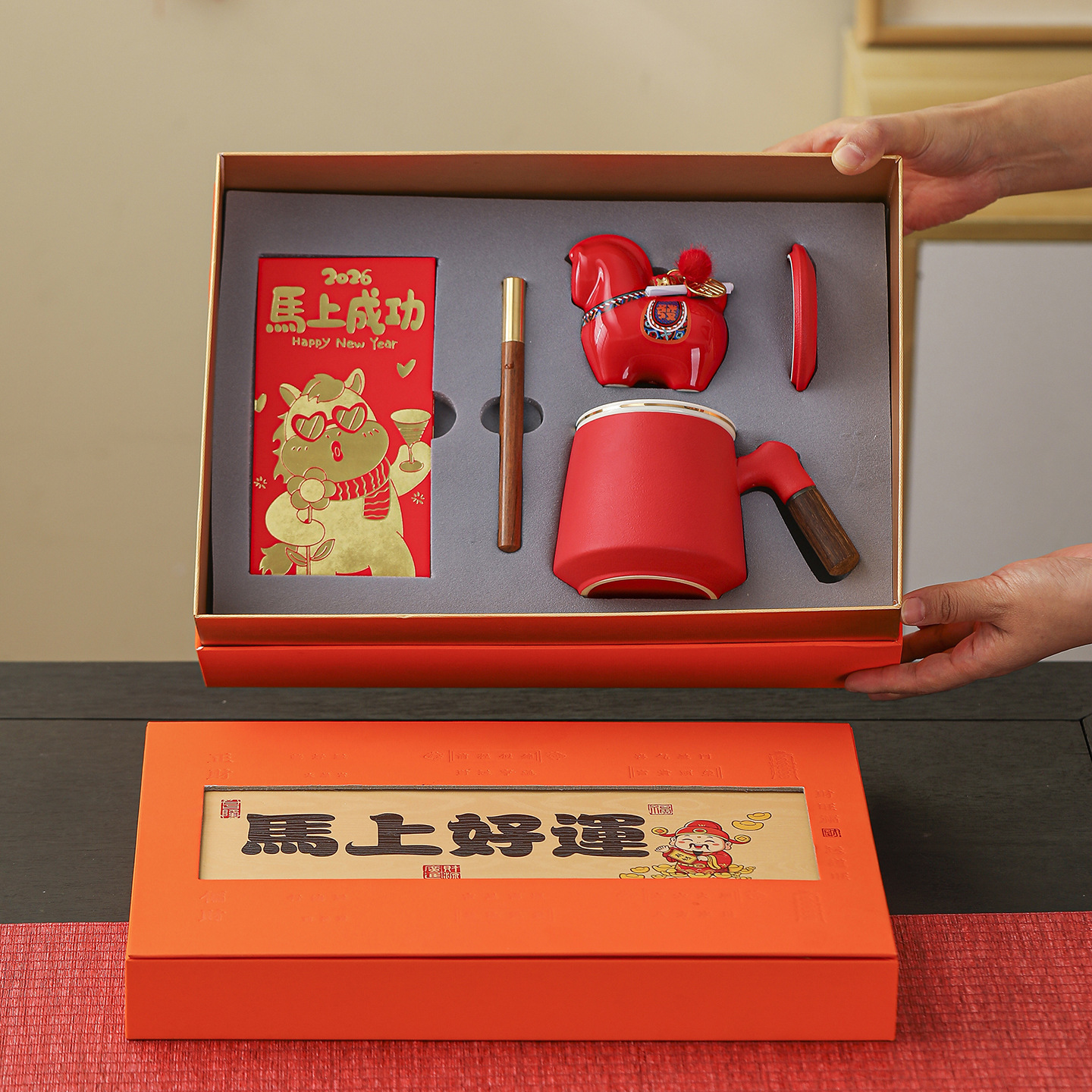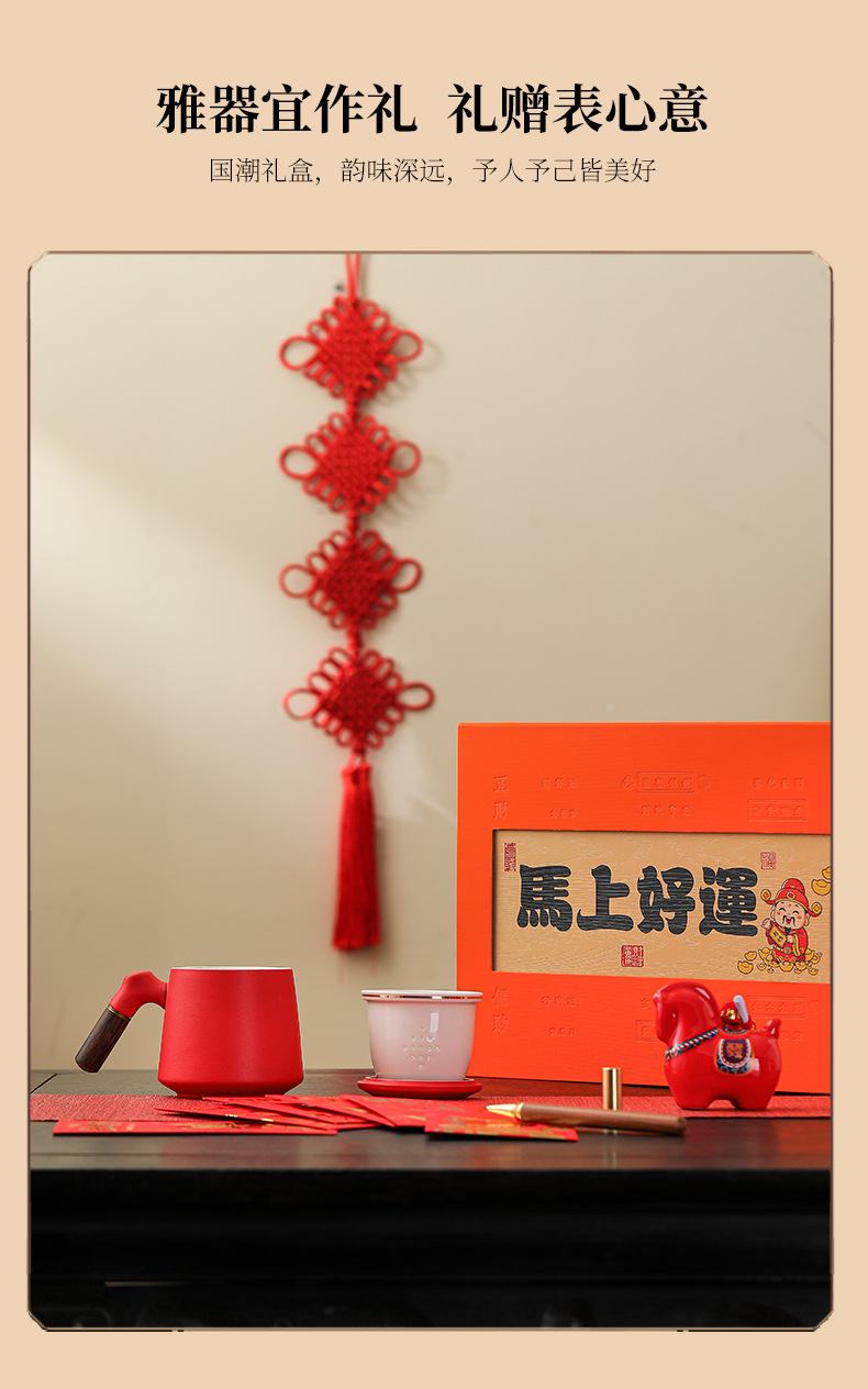 材质: 陶瓷 类别: 节庆礼品套装 品牌: 格子 风格: 国潮 是否IP授权: 否 有可授权的自有品牌: 是 颜色: 红色套装,桔色套装,黑色套装 是否专利货源: 否 货号: 992134530896 是否属于礼品: 是,个人礼品 包装种类: 礼盒装 重量: 0.159 kg/套
