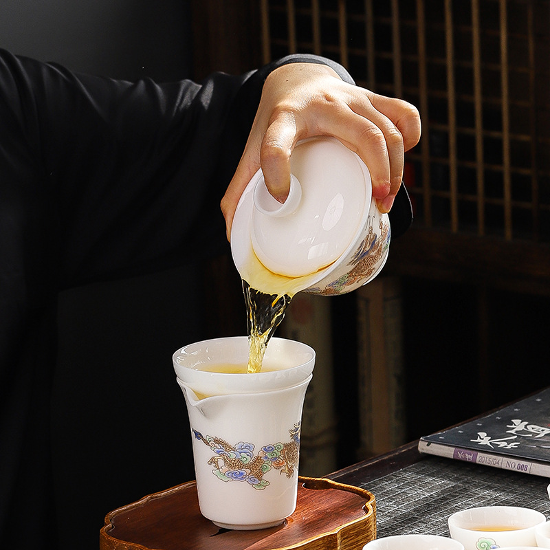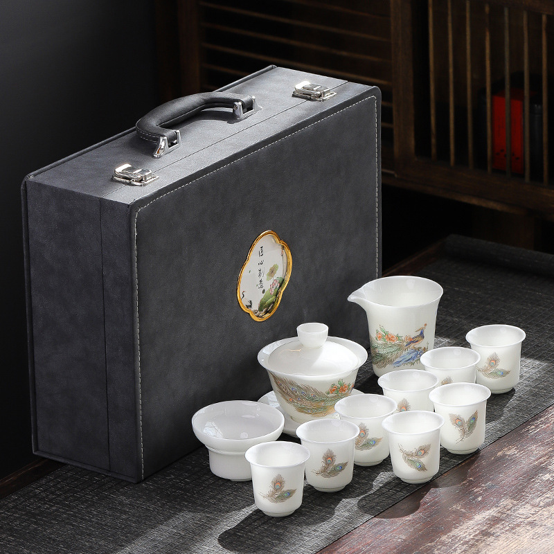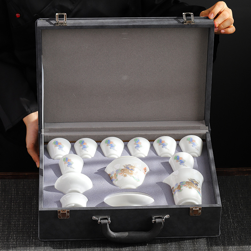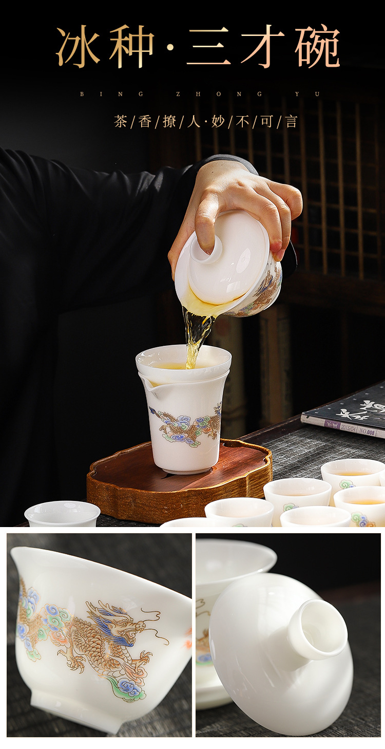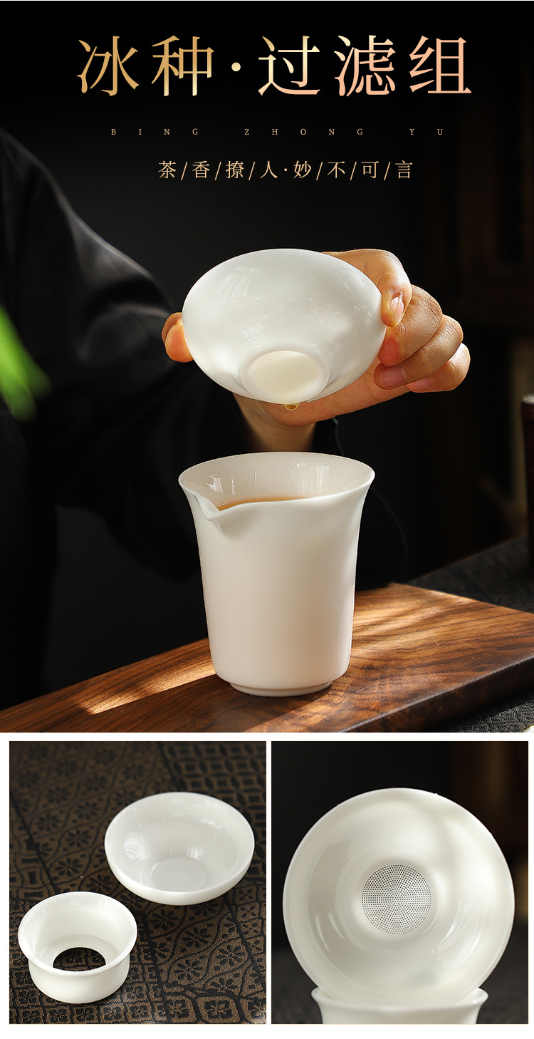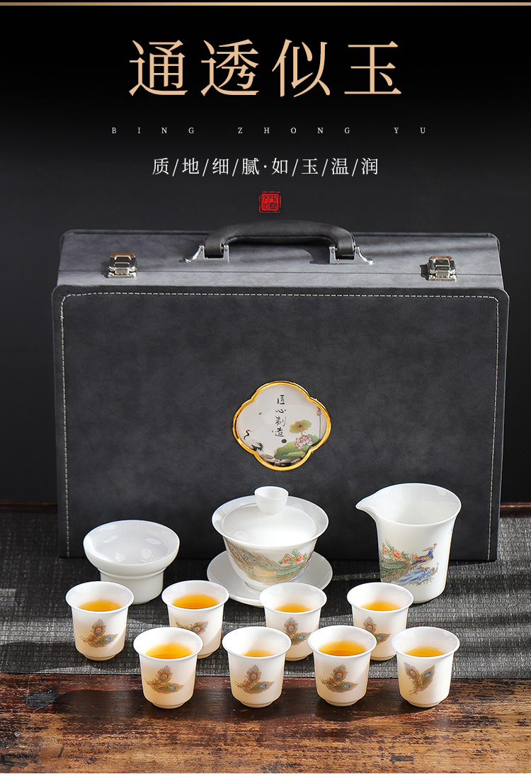德化高档冰种羊脂玉白瓷功夫茶具套装全套陶瓷办公室茶杯盖碗整套 English | 投诉