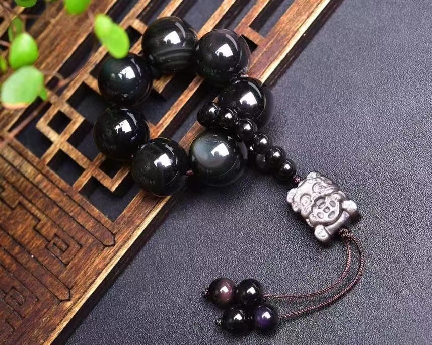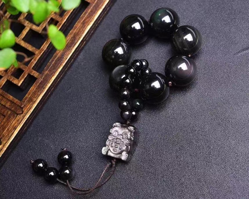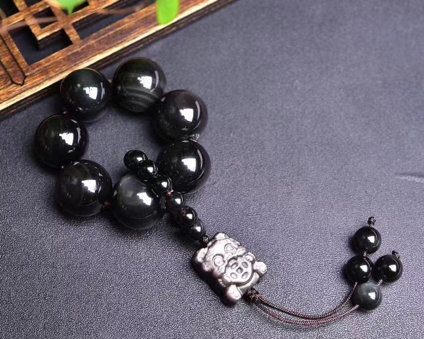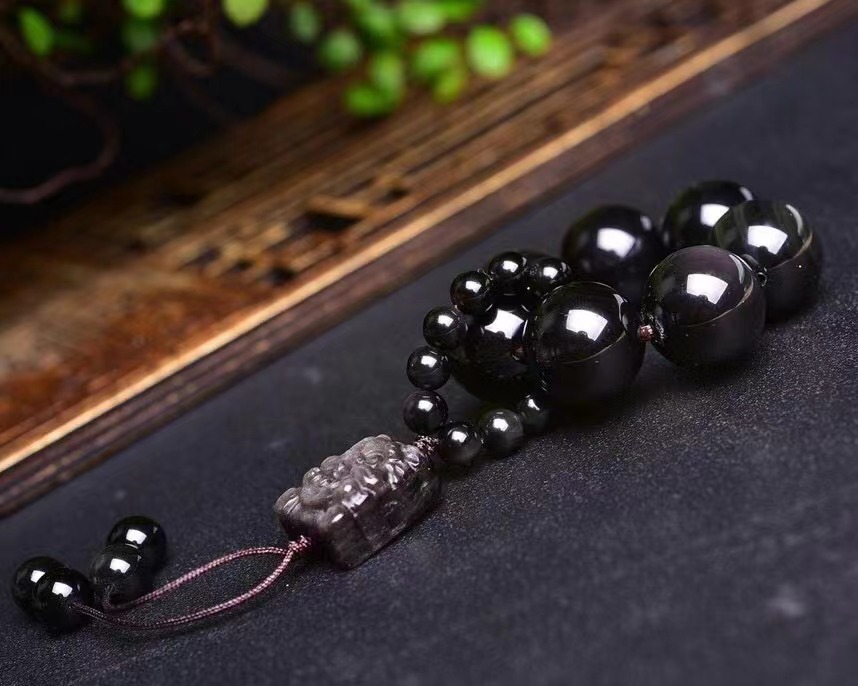 天然黑曜石手捻加可爱的银曜石貔貅吊坠简单大方 男女均可佩戴 English | 投诉