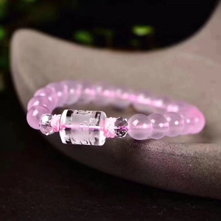 新款天然粉晶手链 六字真言隔珠 粉晶招桃花旺夫旺人缘 尺寸:8mm English | 投诉