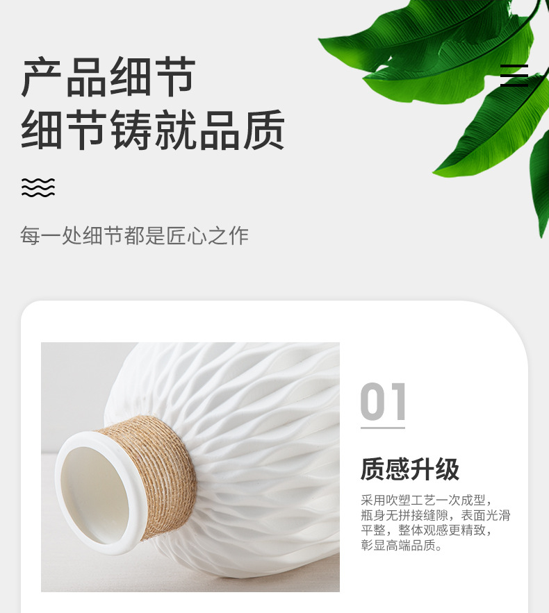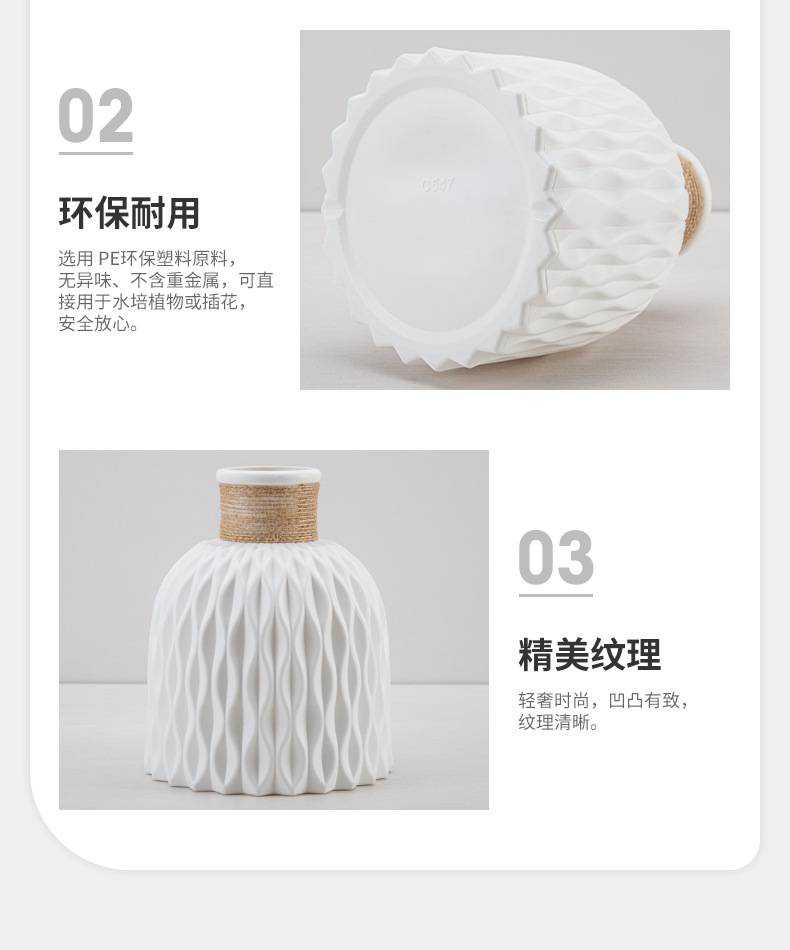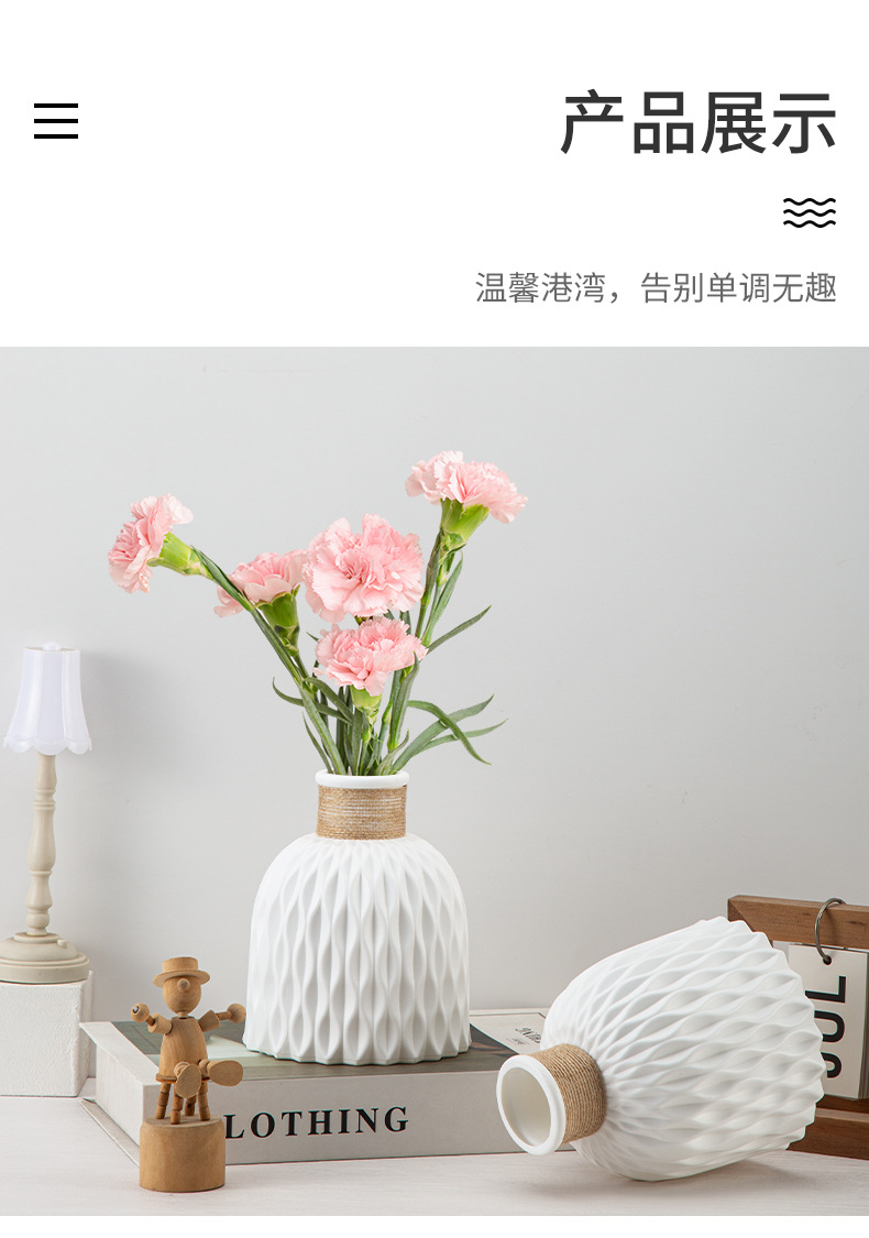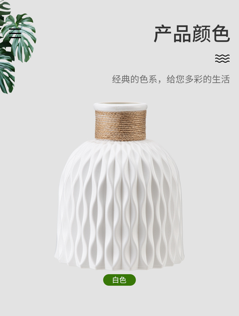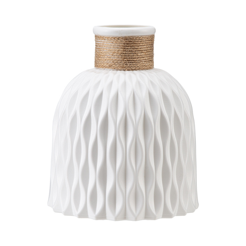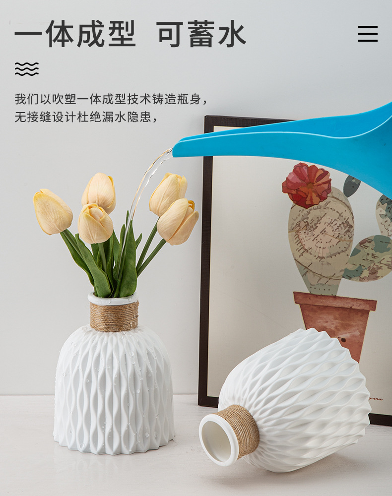 厂家批发塑料花瓶褶皱现代简约仿陶瓷可续水鲜花瓶客厅装饰小花瓶 English | 投诉