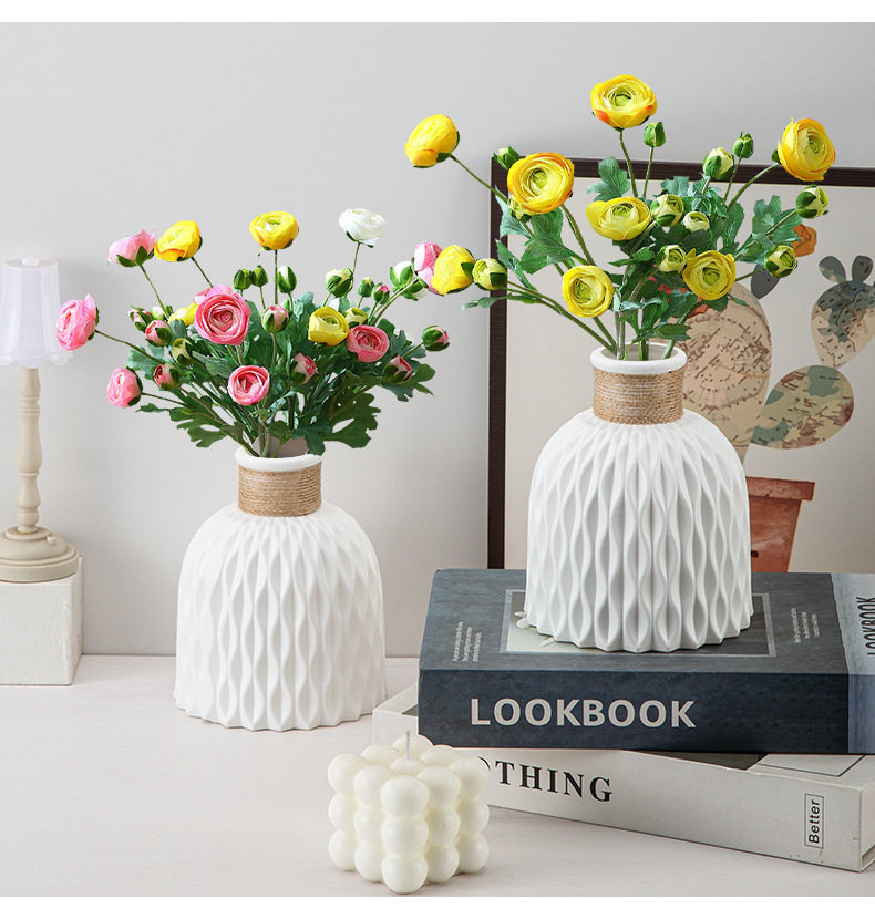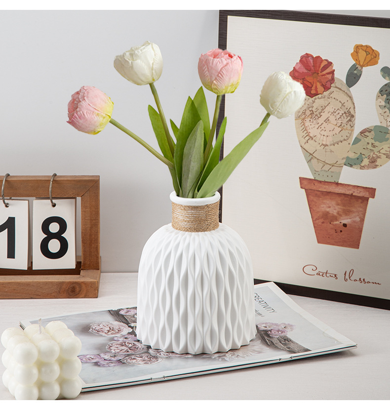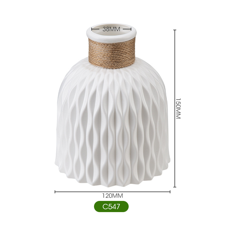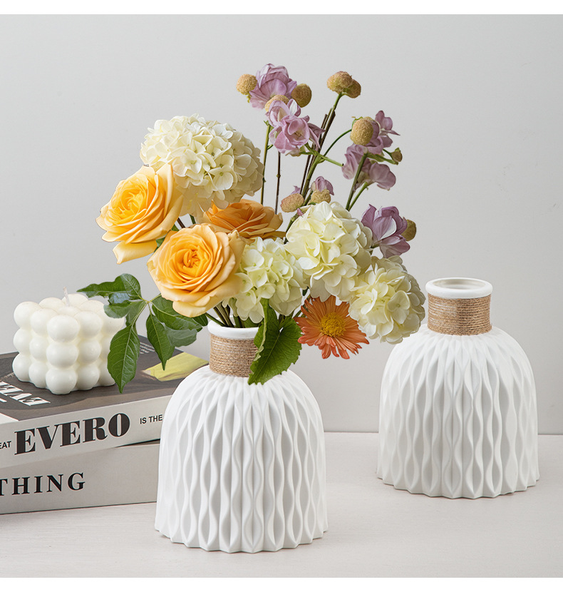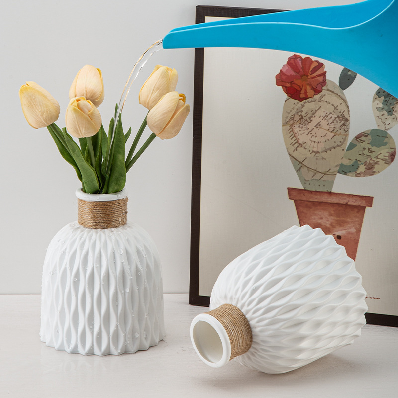 厂家批发塑料花瓶褶皱现代简约仿陶瓷可续水鲜花瓶客厅装饰小花瓶