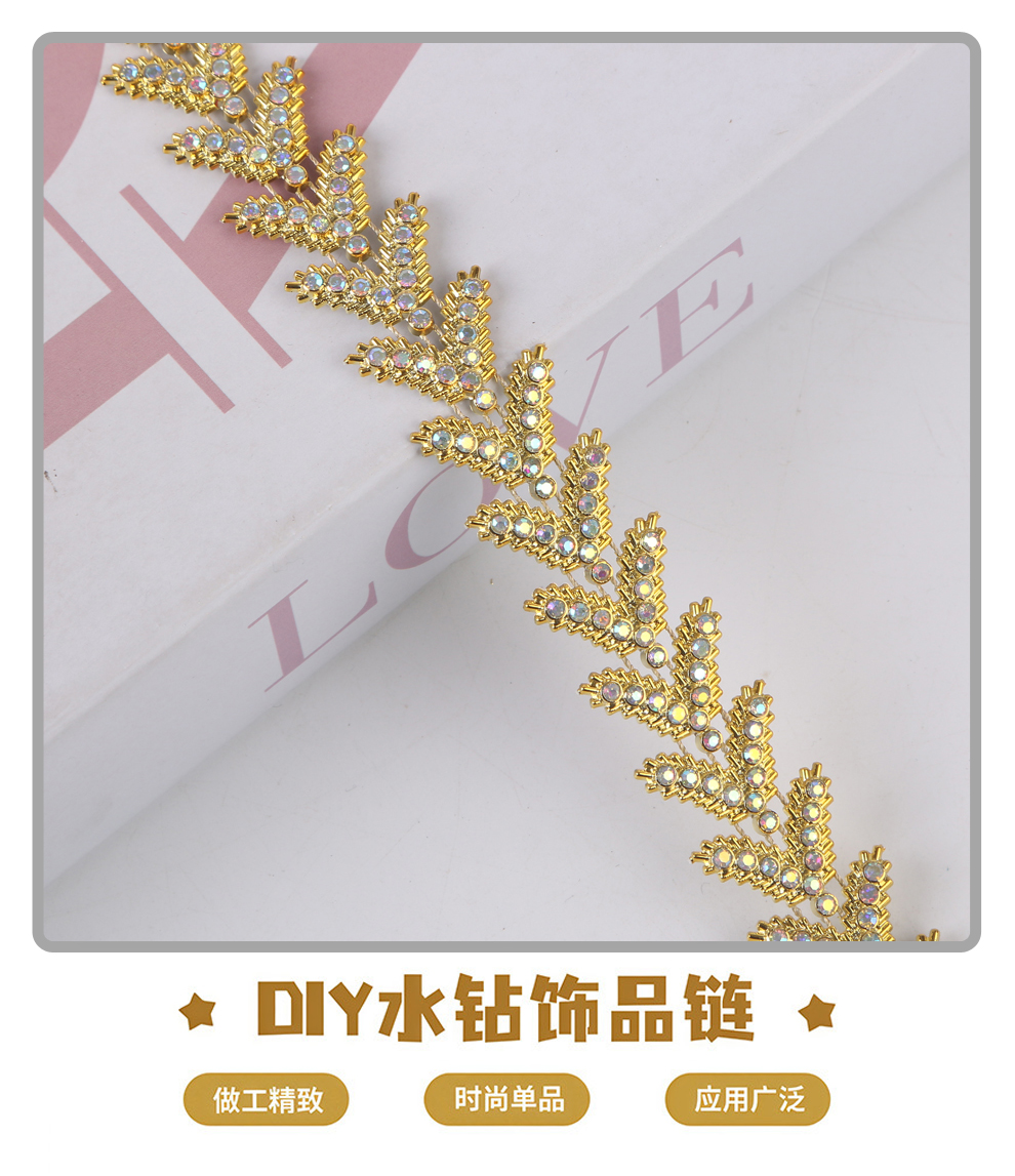 产品名称:炫彩眼钻爪链服装辅料钻链 手工DIY水钻链条烧焊水钻链条装饰配饰