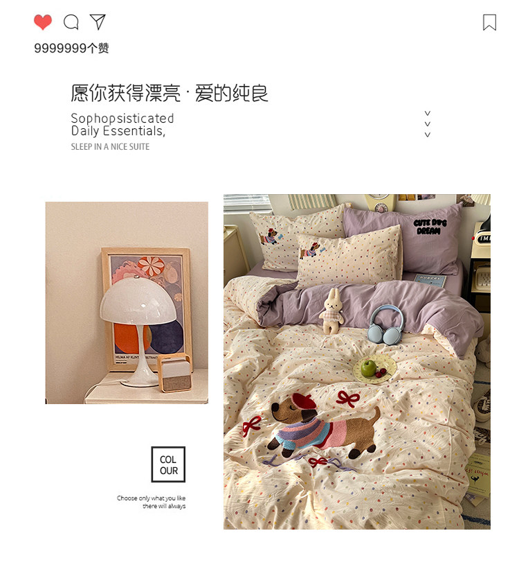 | 1.8床笠款被套200*230cm床笠180*200cm48*74cm*2 | ¥12000 | 9999套可售 |