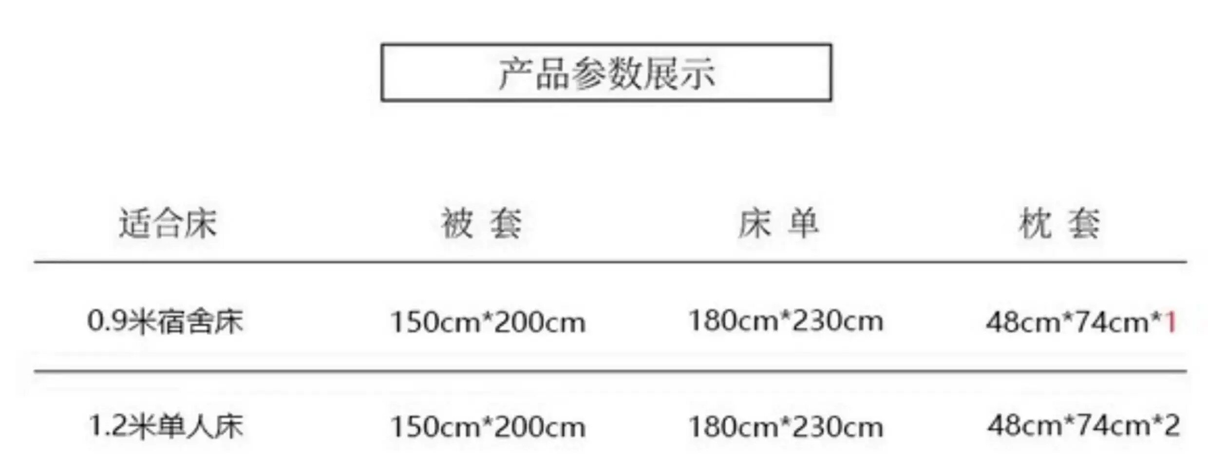 | 1.5床笠款被套200*230cm,床笠150*200cm,48*74cm*2 | ¥12000 | 9996套可售 |