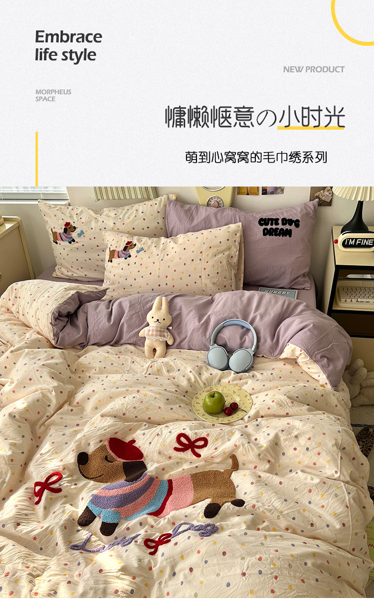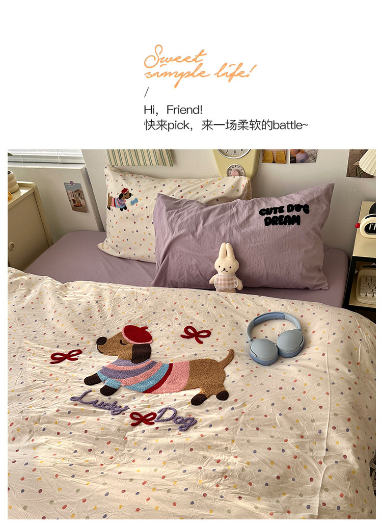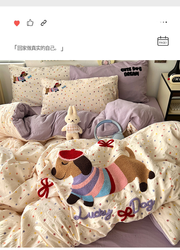 | 1.5米床笠款 被套180*220cm床笠150*200cm,48*74cm*2 | ¥12000 | 9994套可售 |