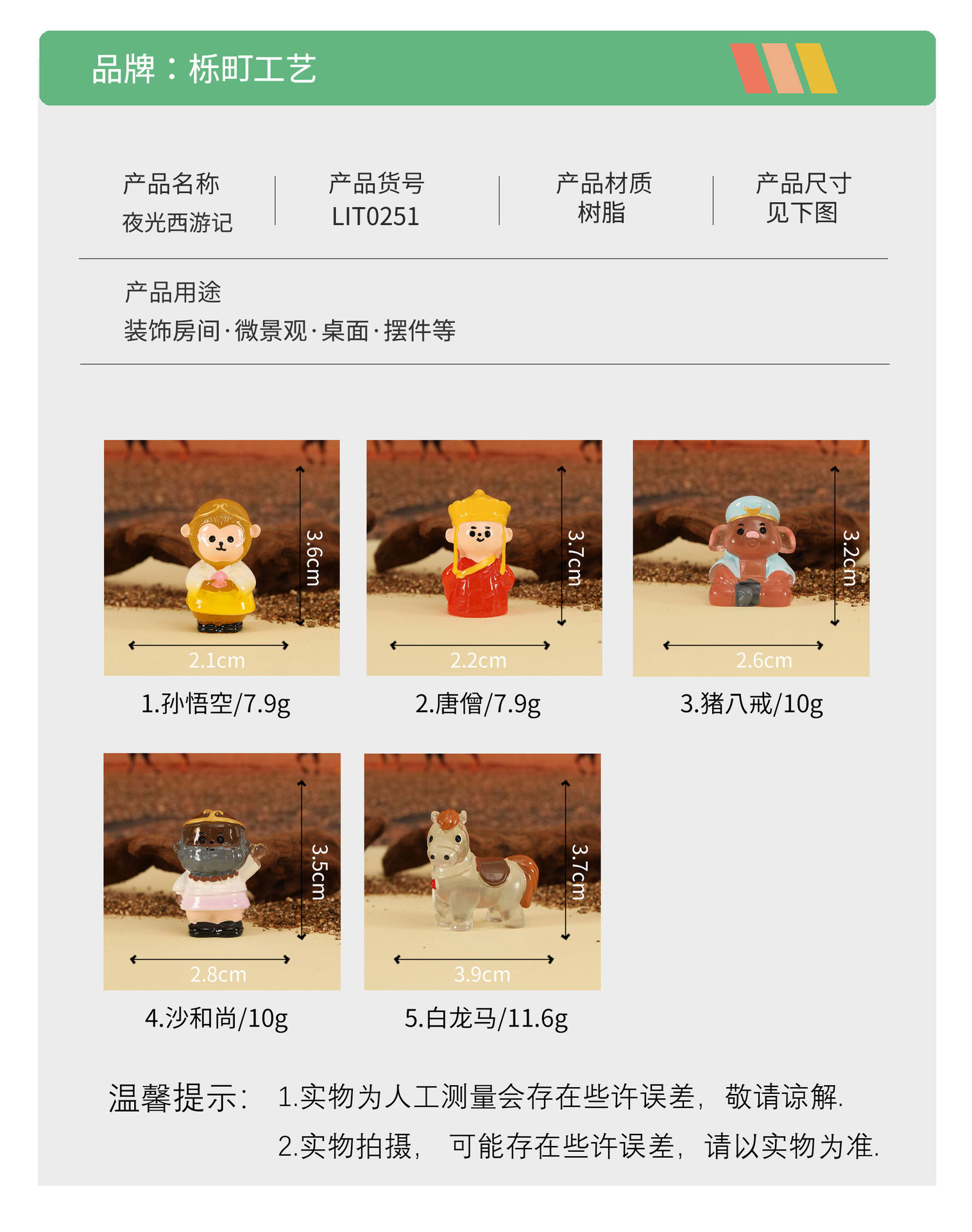 微景观夜光西游记 diy装饰品盆景多肉孙悟空唐僧猪八戒树脂小摆件 English | 投诉
