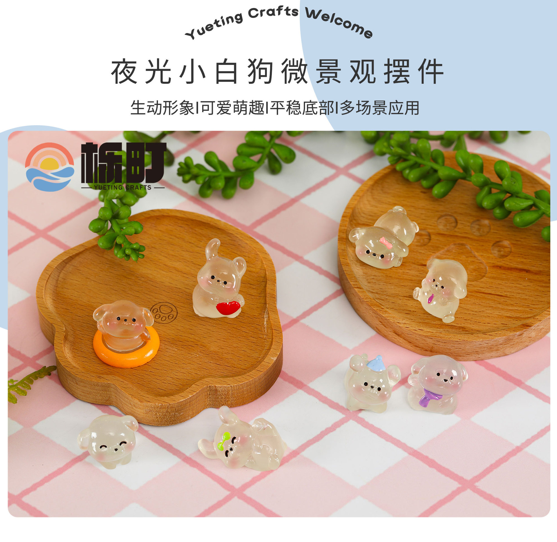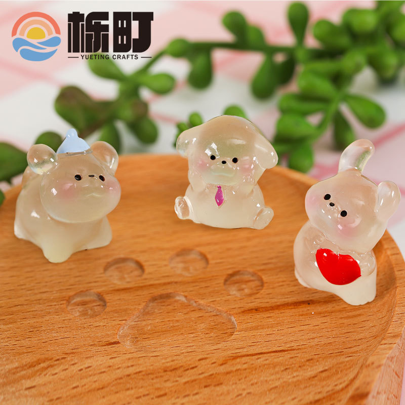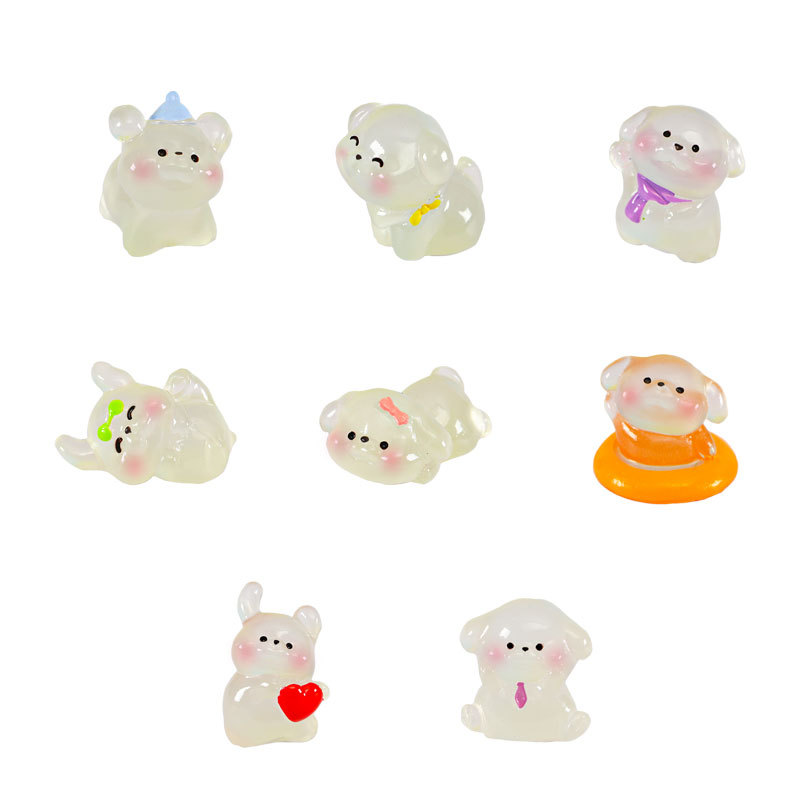 微景观可爱卡通夜光小白狗动物公仔手办装饰品配件车载桌面小摆件 English | 投诉