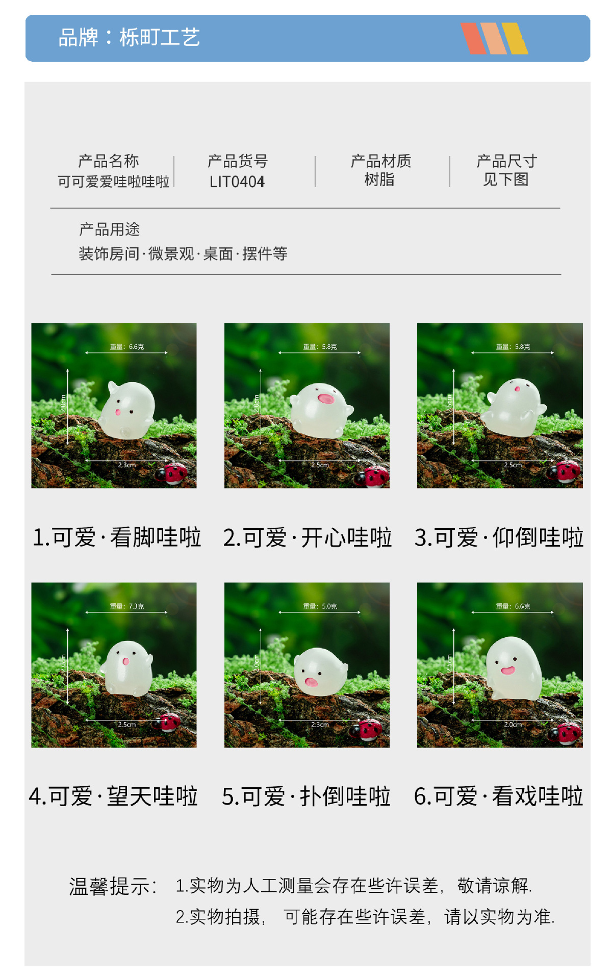 义乌市栎町工艺品有限公司是一家自主设计,生产,销售一体的工艺品摆件厂家。主要生产树脂工艺品摆件、PVC塑料公仔玩偶、微缩小物件……。 主营:微景观摆件、PVC玩偶、钥匙扣公仔、桌面小摆件,接受各种加工定制。欢迎各位朋友来洽谈合作。我们会竭尽全力、竭尽所能把产品和服务提供给大家!