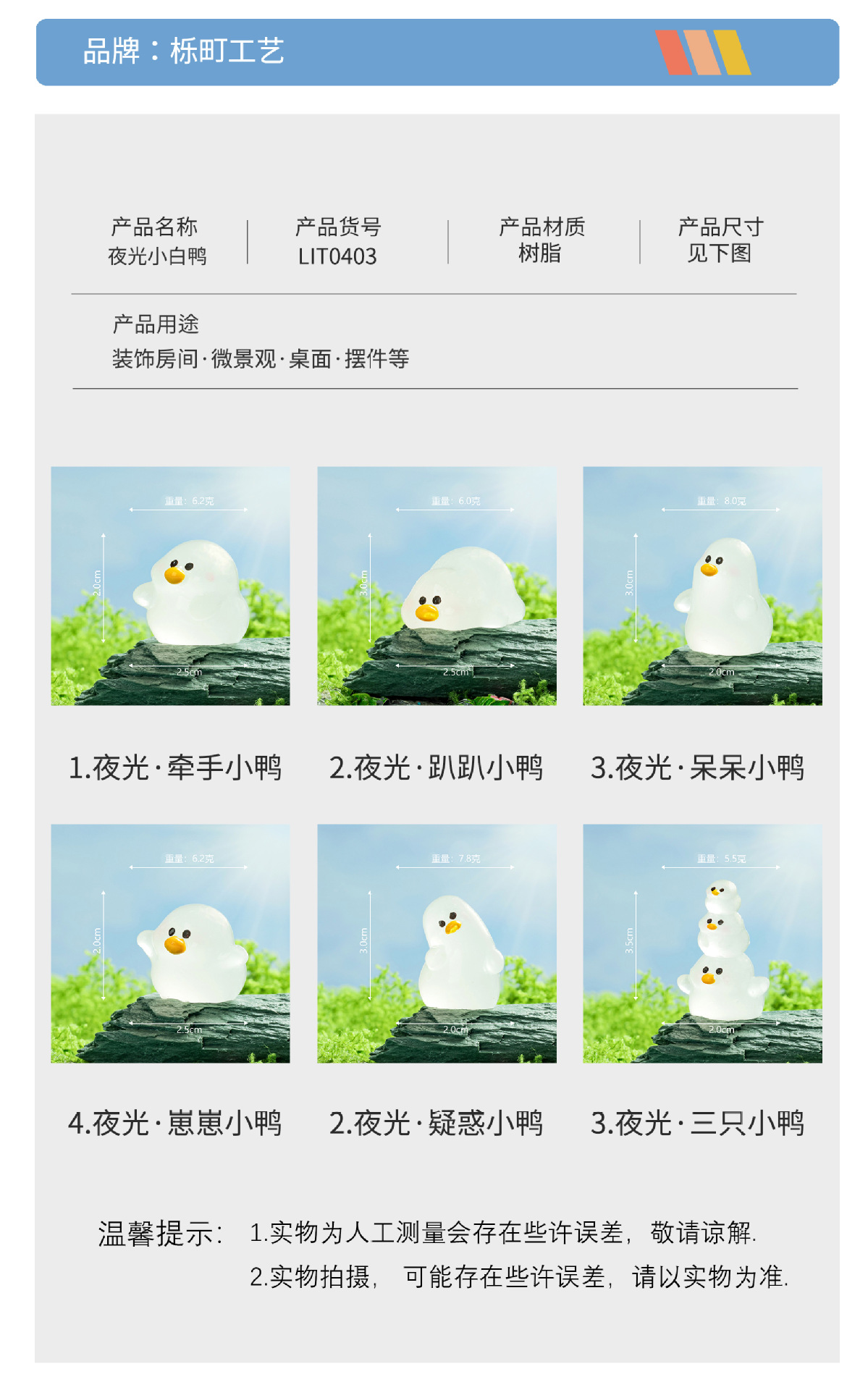 材质: 树脂 类别: 树脂工艺品 风格: 卡通 品牌: 其他 包装: 普通包装 适用节日: 其他 货号: LIT0403 是否专利货源: 否 颜色: 夜光 三只小鸭,夜光 崽崽小鸭,夜光 是否属于礼品: 否