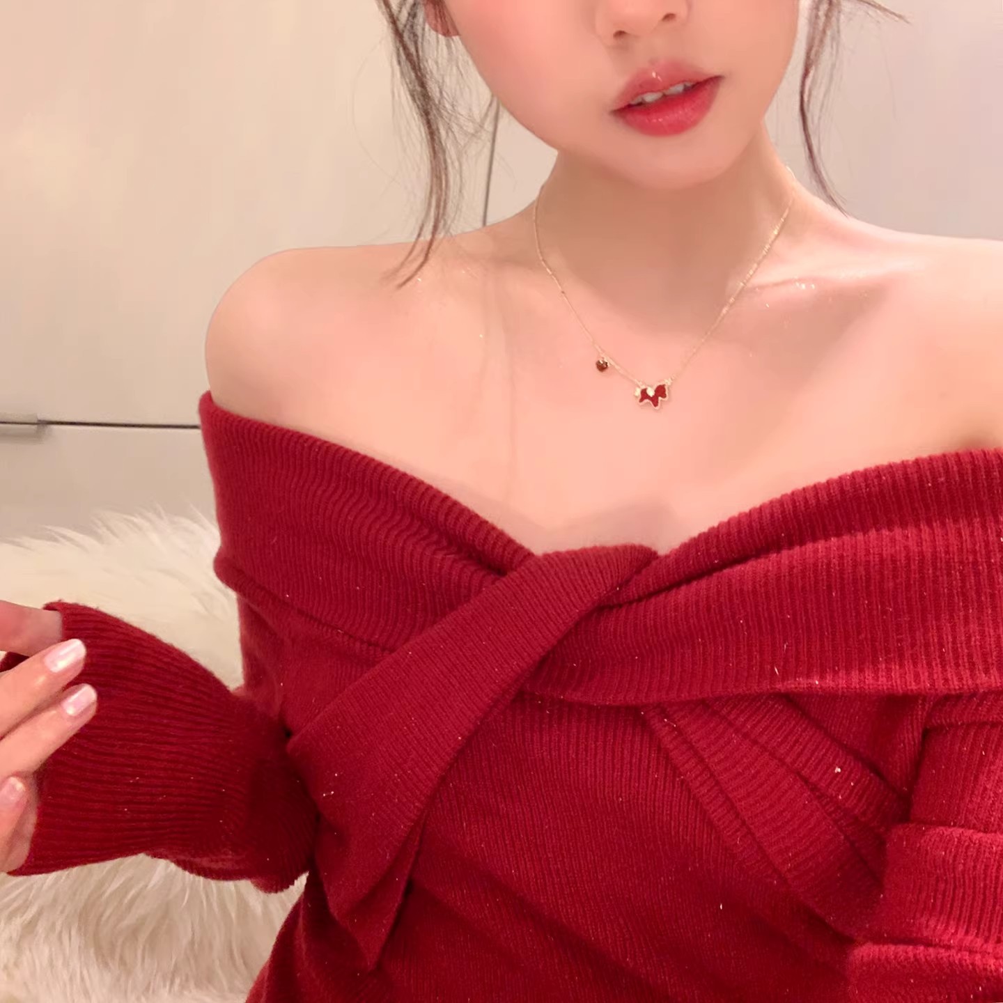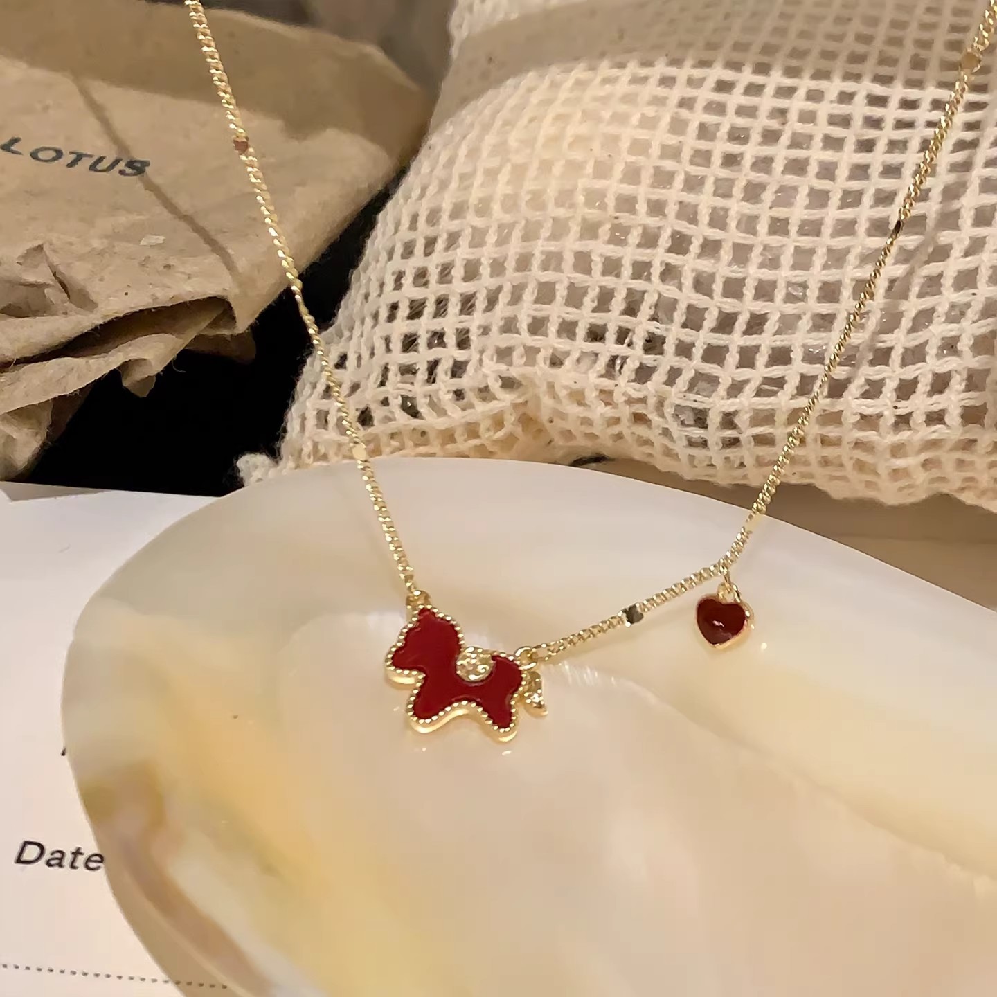 钛钢不掉色新年红色金色小马项链女轻奢锁骨链配饰气质毛衣链颈链 English | 投诉