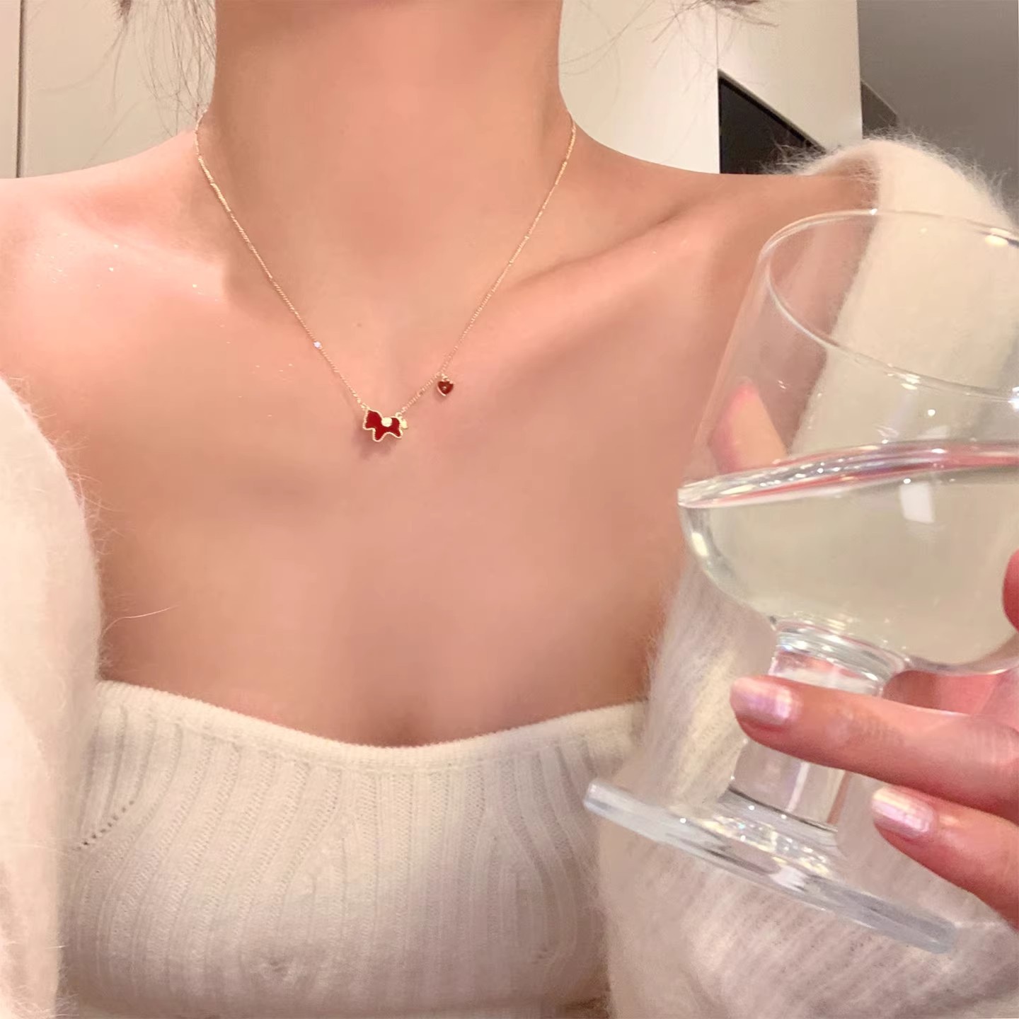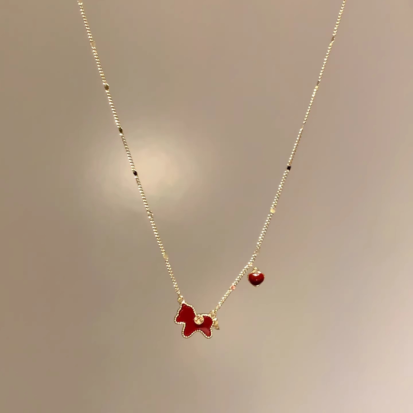 钛钢不掉色新年红色金色小马项链女轻奢锁骨链配饰气质毛衣链颈链