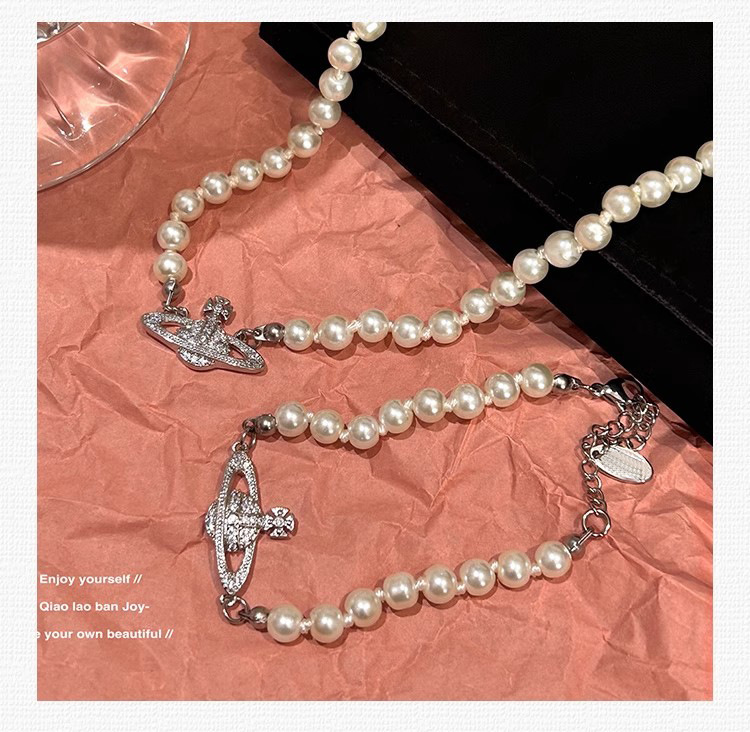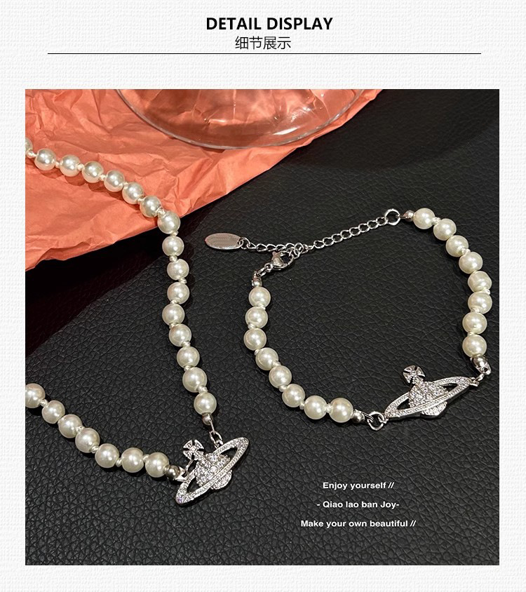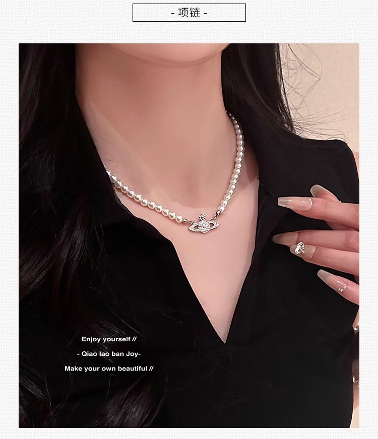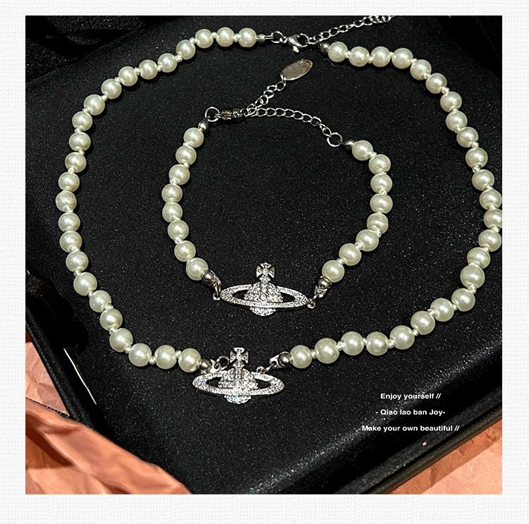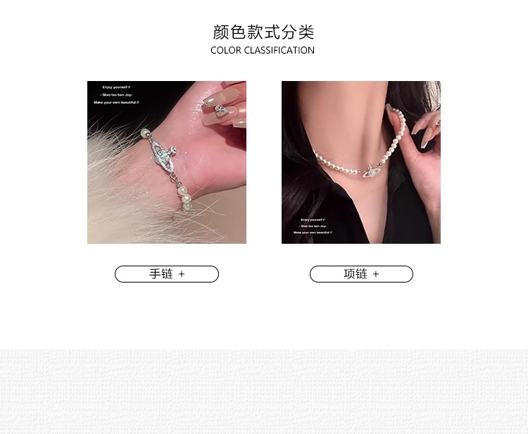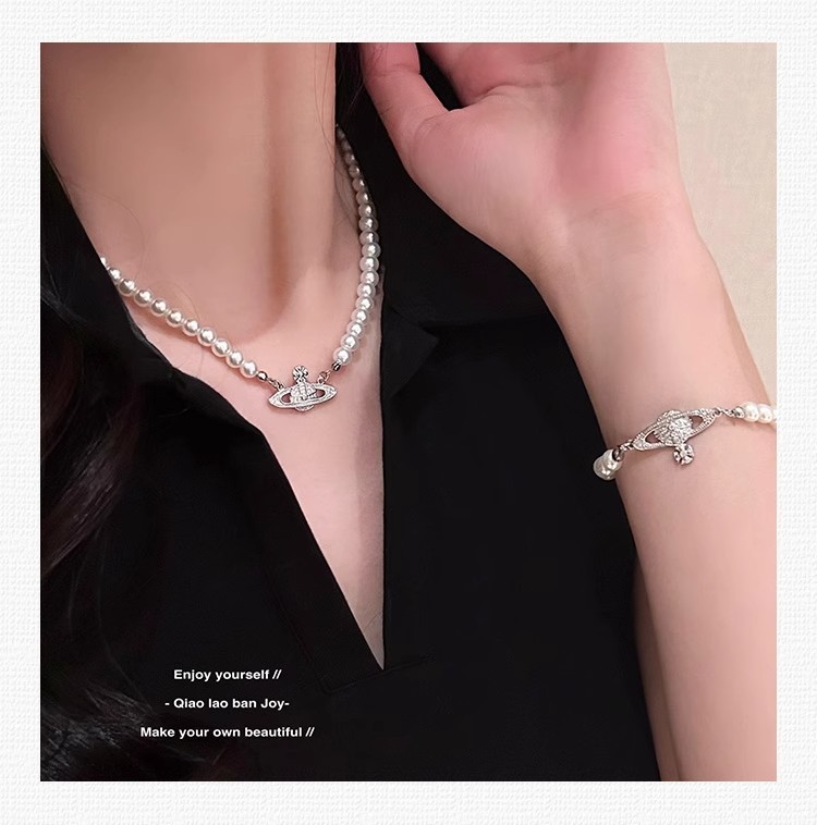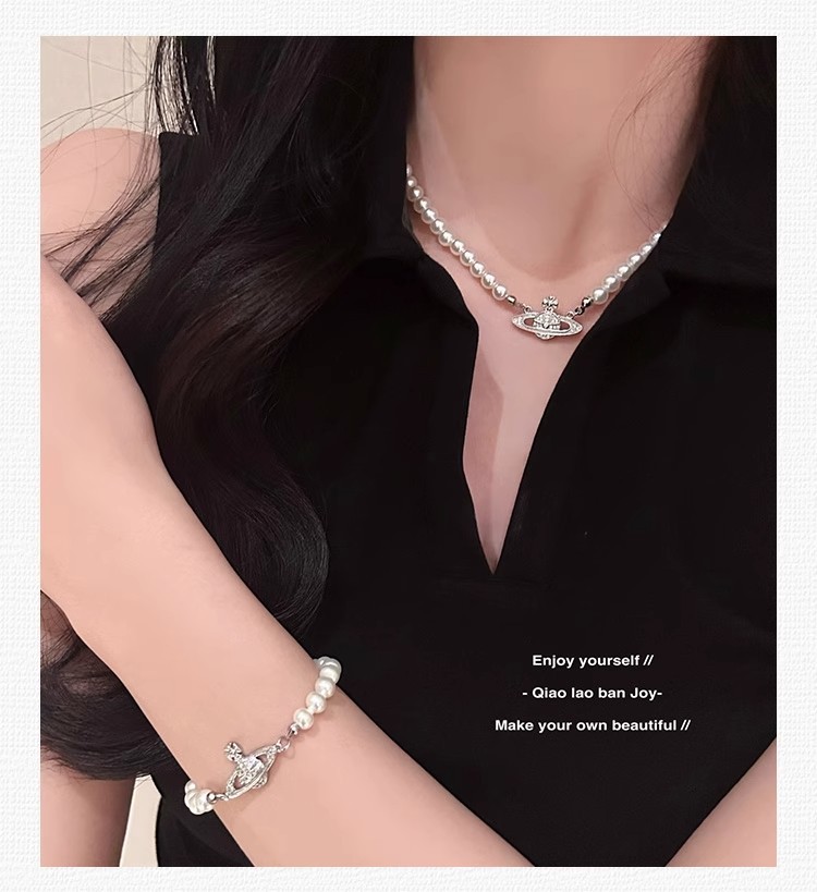钛钢不掉色西太后土星星球吊坠珍珠项链手链女轻奢高颜值锁骨链 English | 投诉