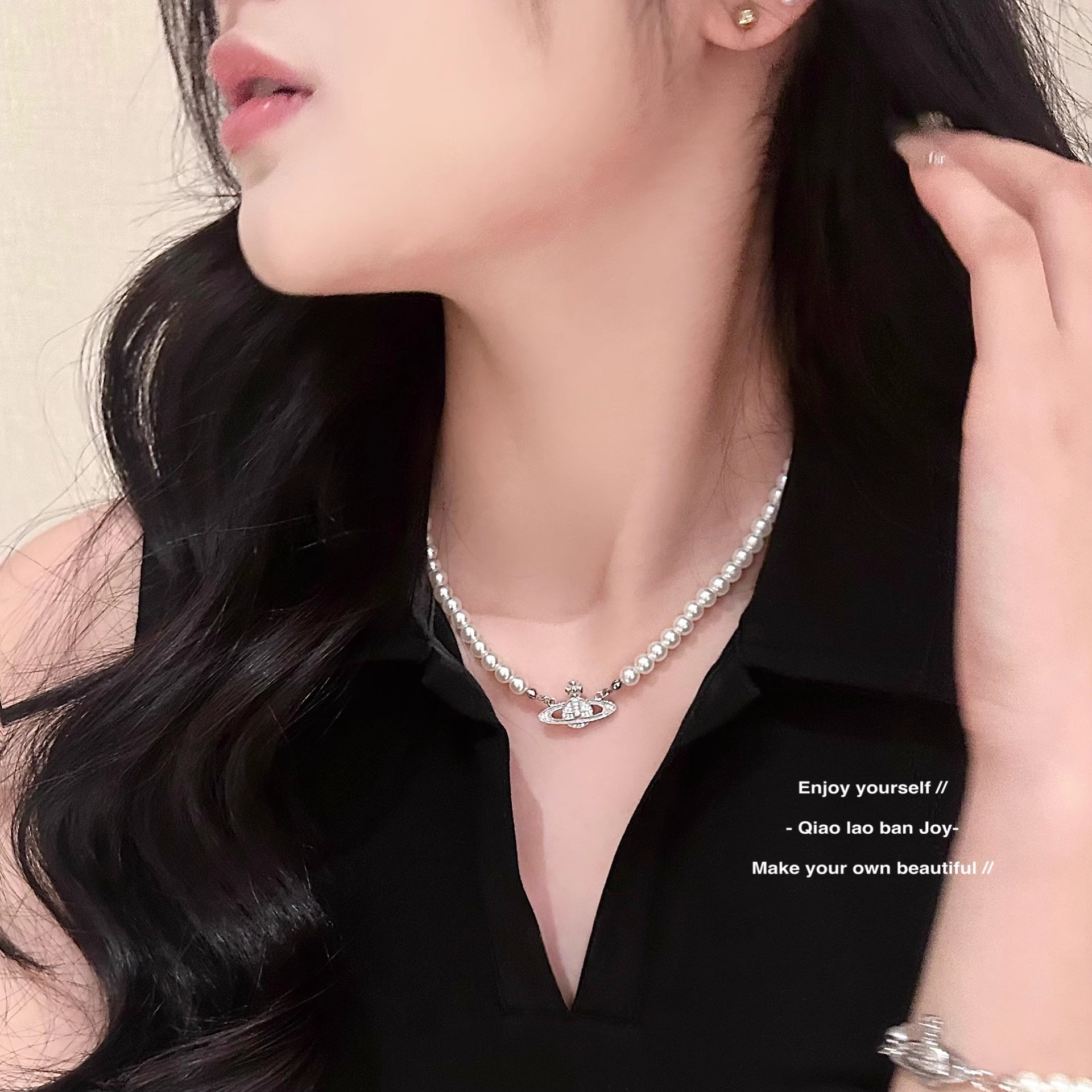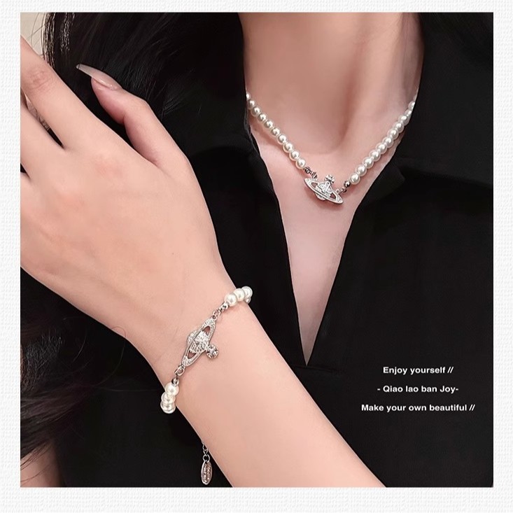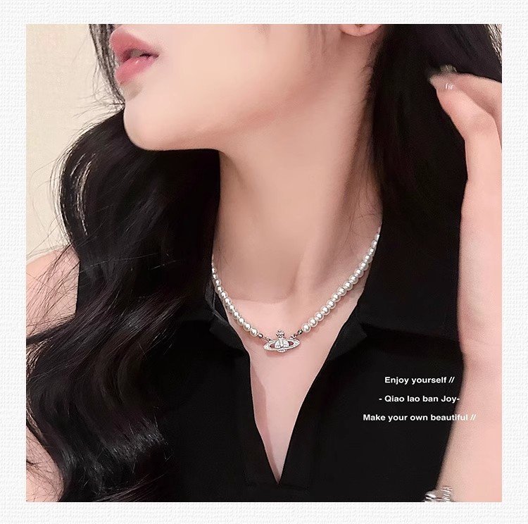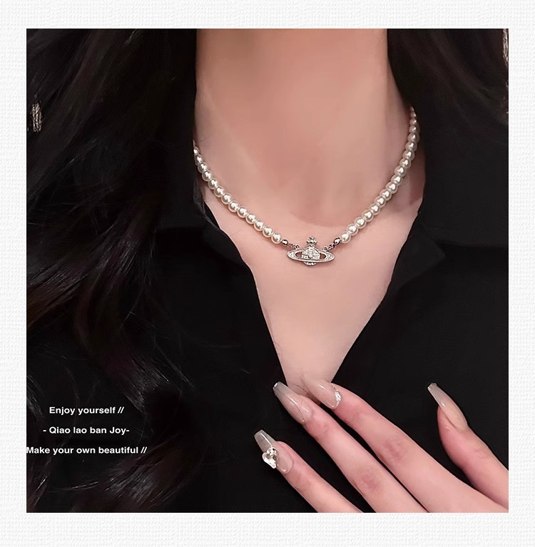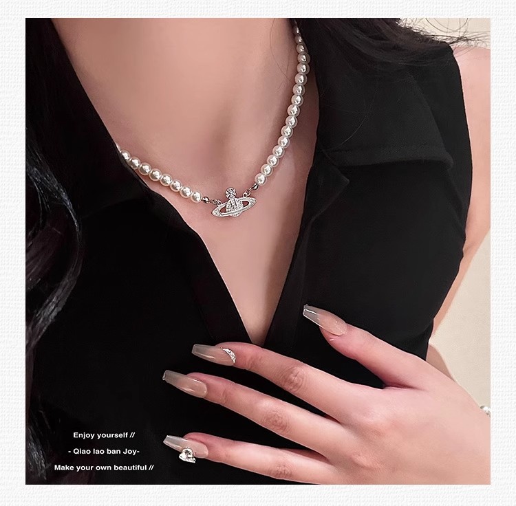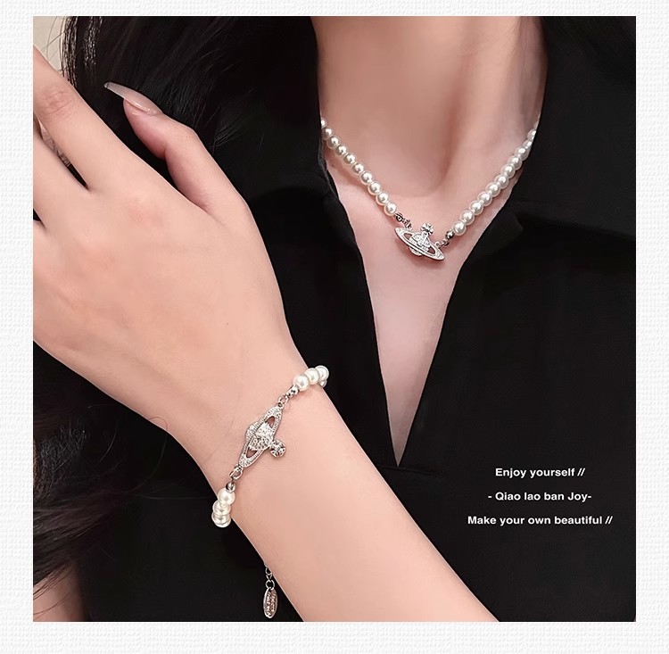 钛钢不掉色西太后土星星球吊坠珍珠项链手链女轻奢高颜值锁骨链 English | 投诉