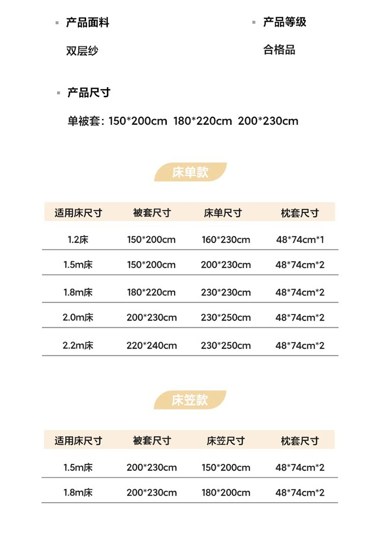 | 单被套:150*200cm | ¥3900 | 200件可售 |