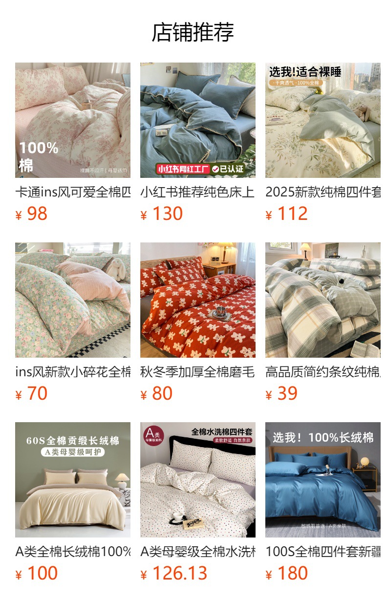 | 1.8m床单款四件套(被套200x230cm) | ¥13000 | 999999件可售 |