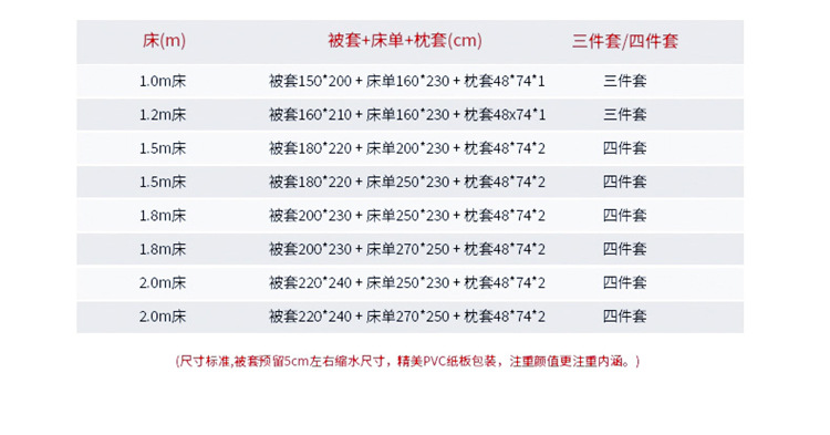 | ③ 被套150x200+床单160x230+枕套2只(四件套) | ¥9000 | 3000套可售 |