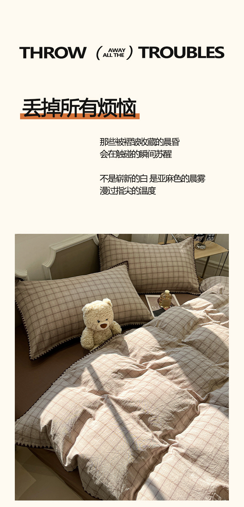 | 1.5米床笠四件套(2.0米被套·1.5米床笠) | ¥17500 | 996套可售 |