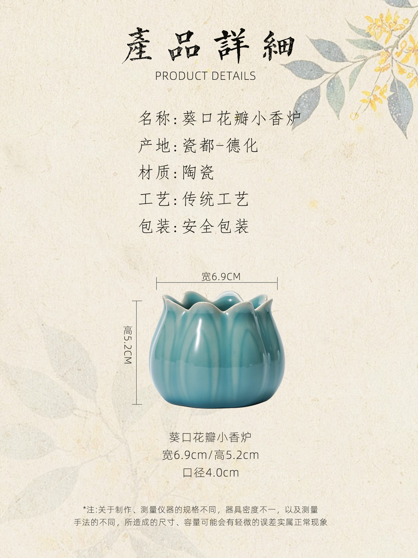 迷你陶瓷花瓣香插线香炉香香托中式家用室内檀香香薰炉国风摆件 English | 投诉