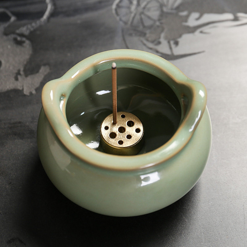青瓷佛具香薰炉家用供奉宣德炉供佛香插旅行便捷携带小香炉九孔香 English | 投诉