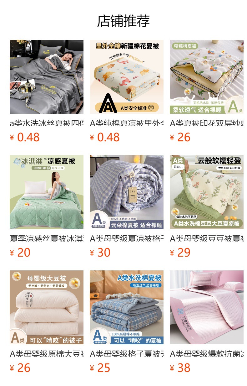 | 200X230cm夏被四件套 | ¥9000 | 9999床可售 |