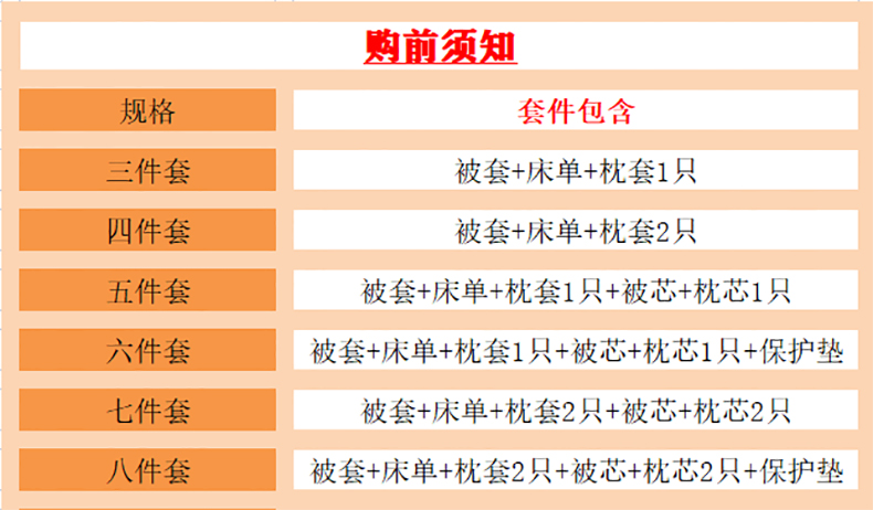 | 1.8米床八件套(6斤春秋被+被套+床单+2枕套+2枕芯+床护垫) | ¥33800 | 200件可售 |