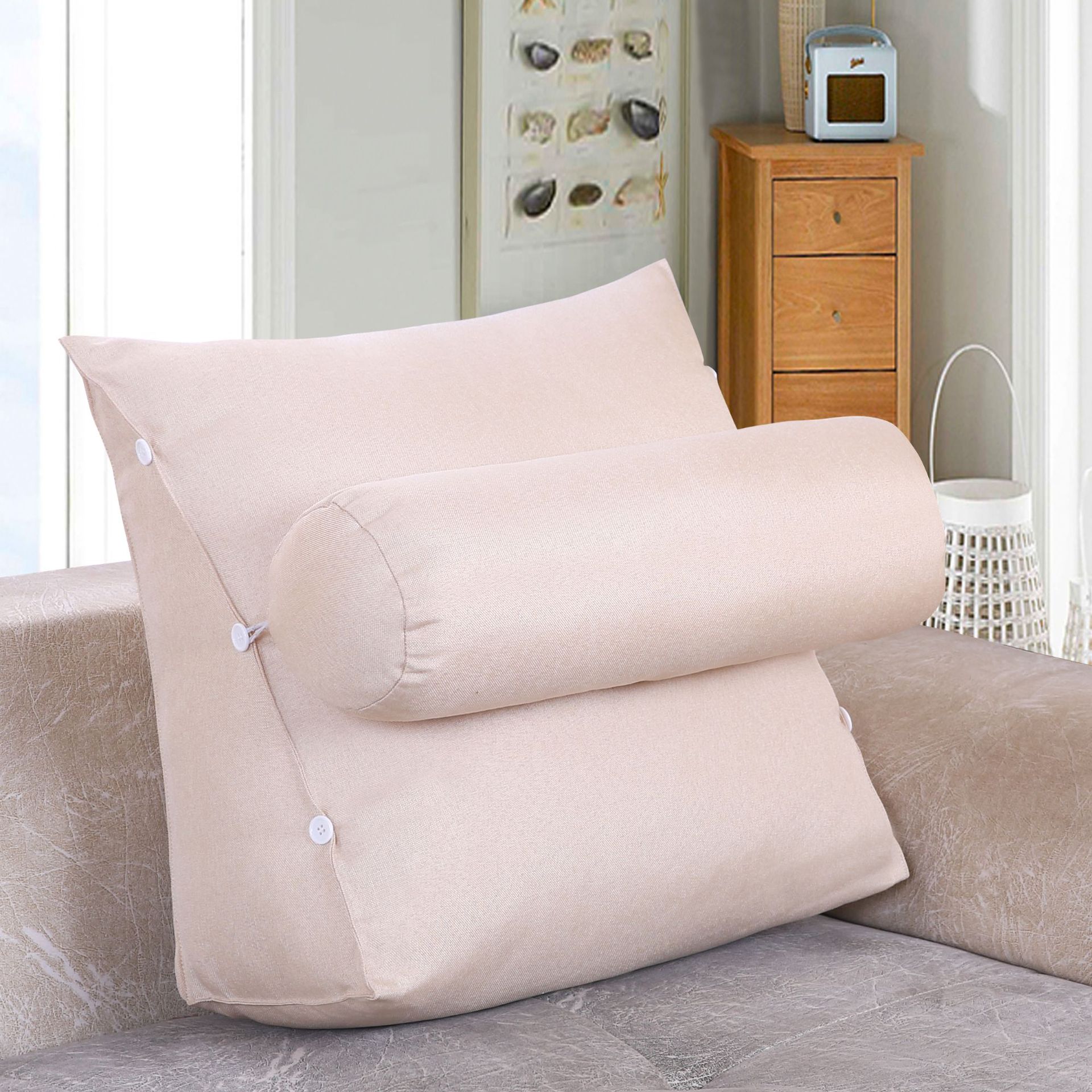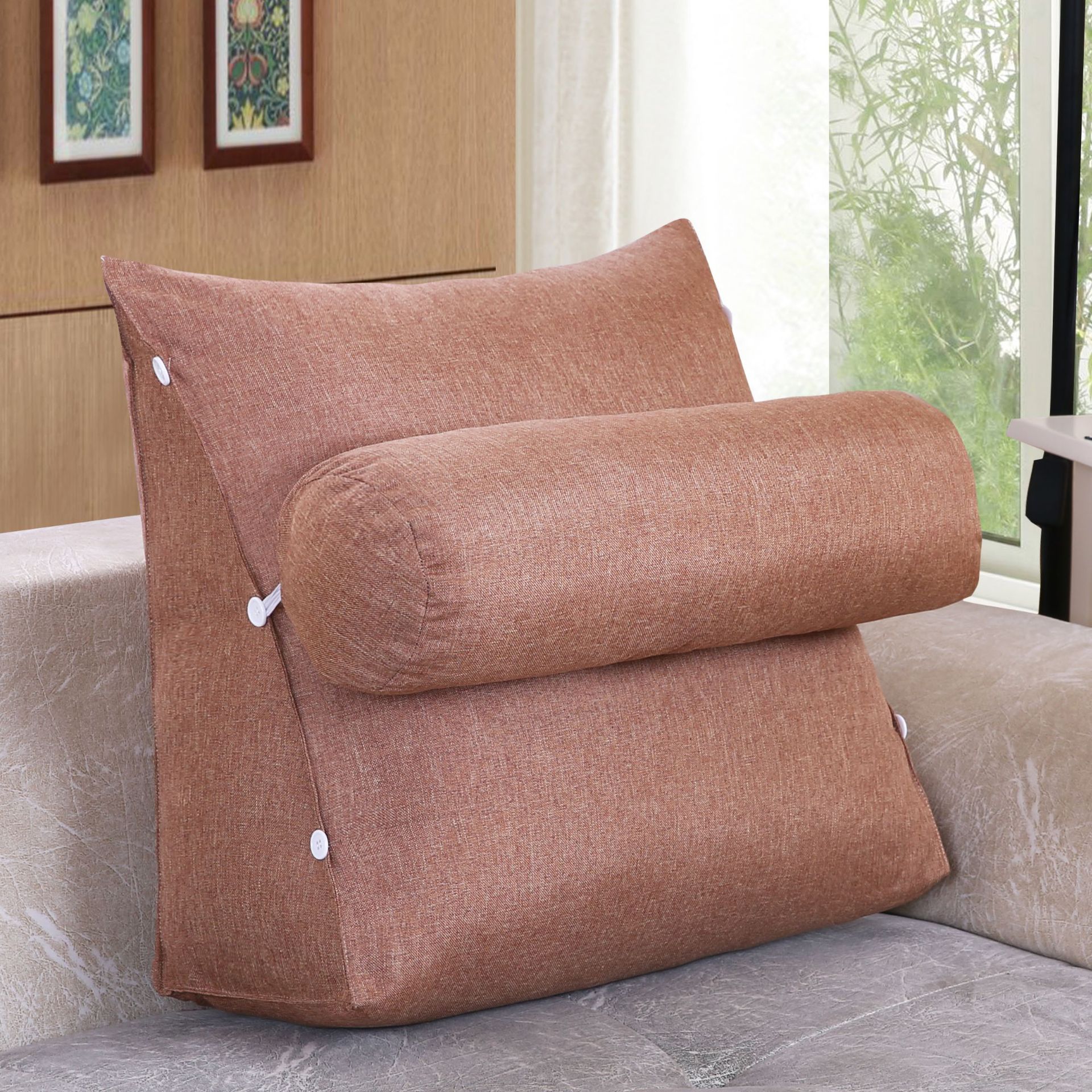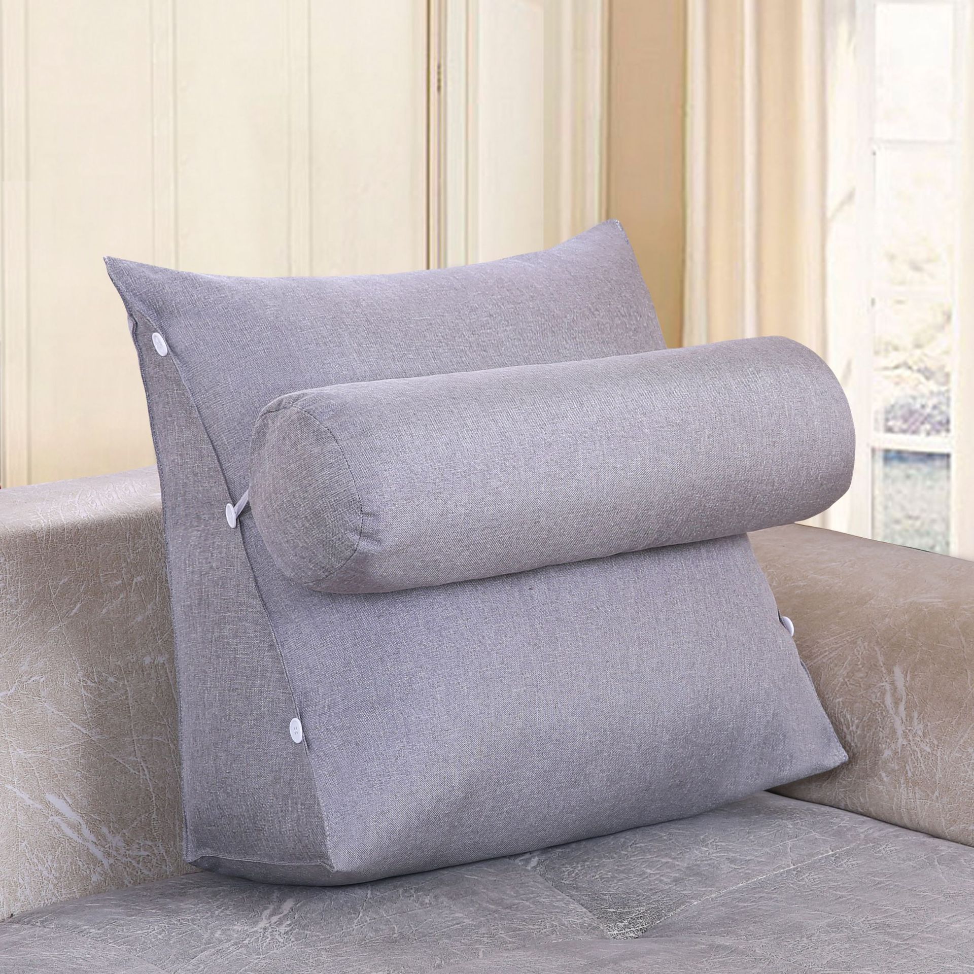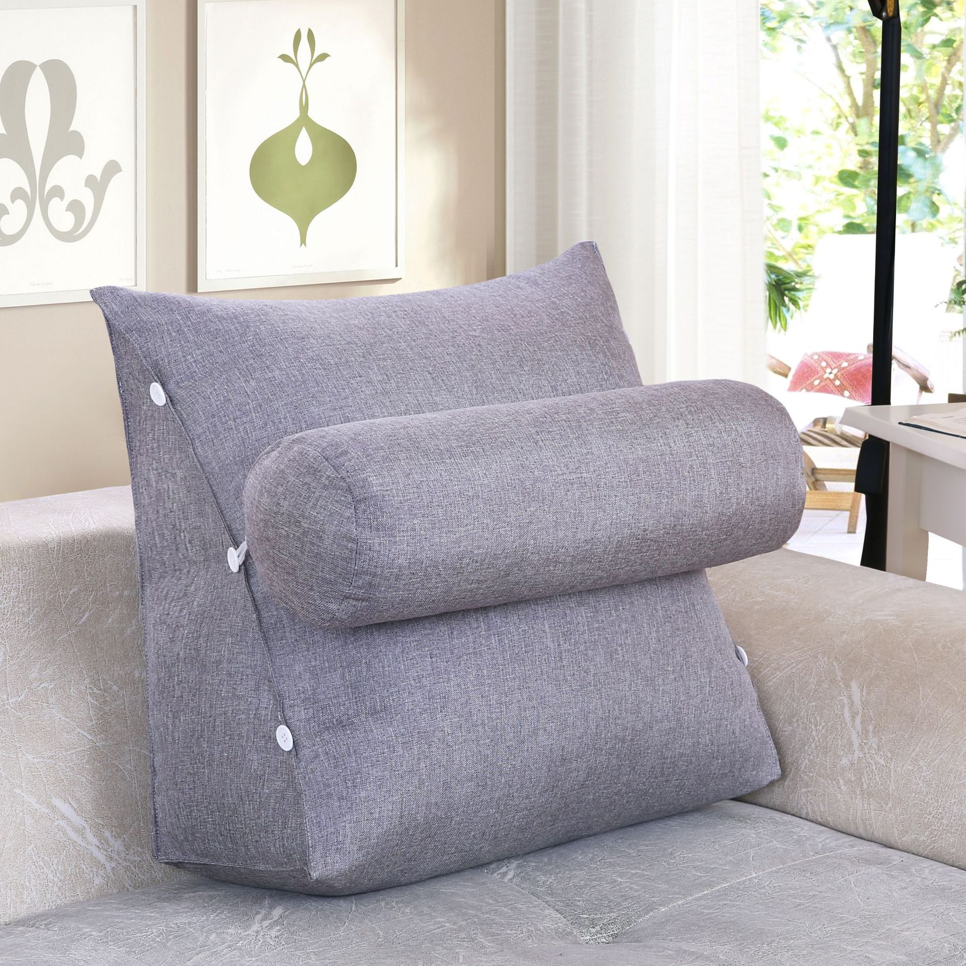 面料:棉麻面料,产品一个三角+一个圆枕组合一套销售,单独立拉链,有内胆 拆洗方便。