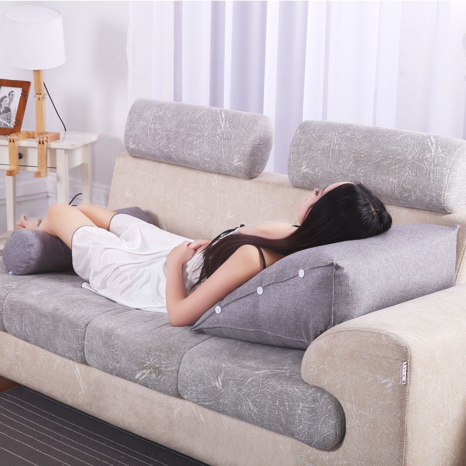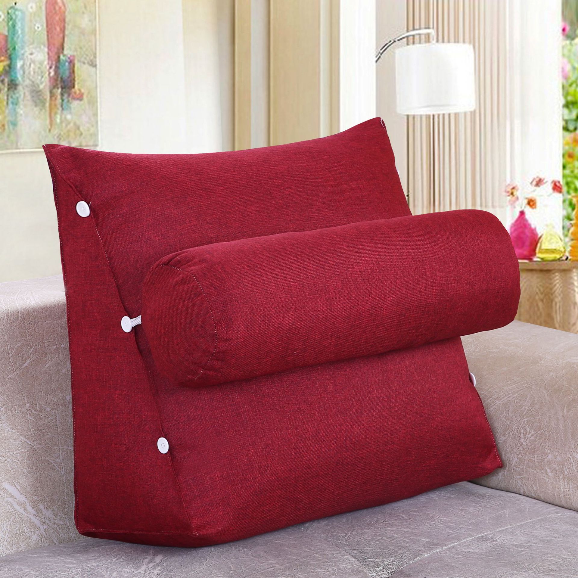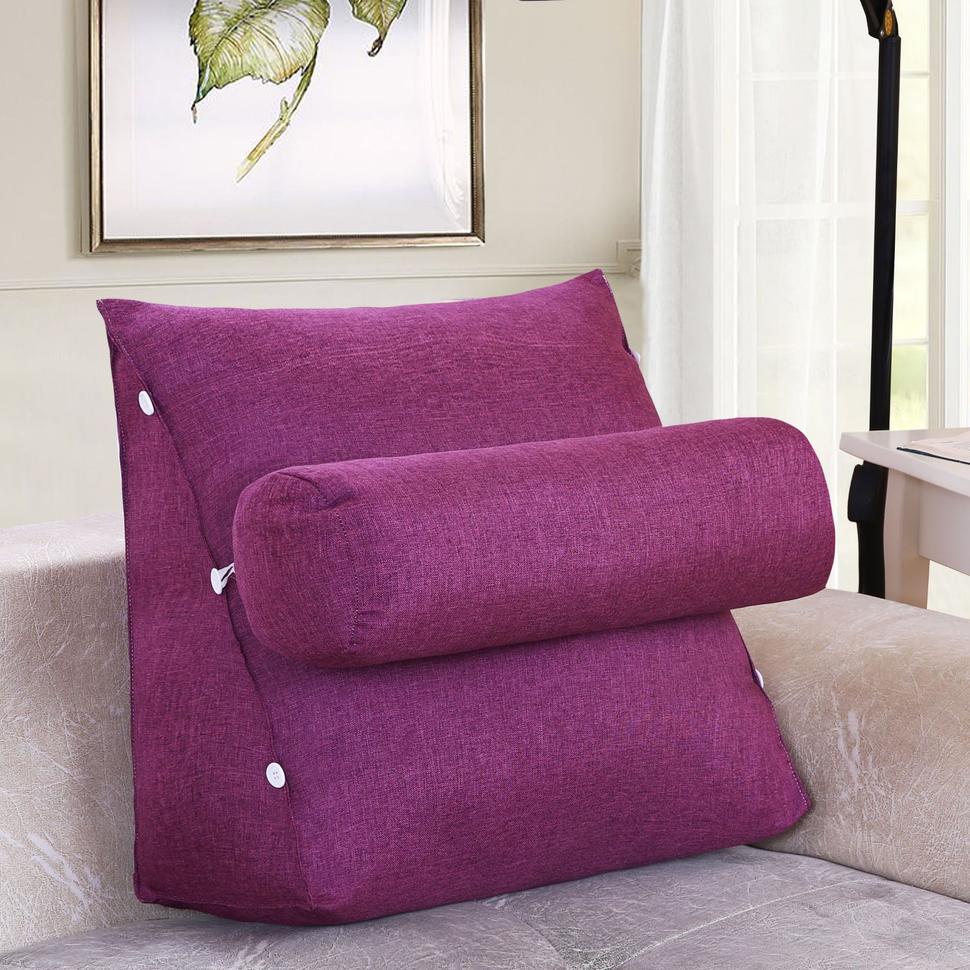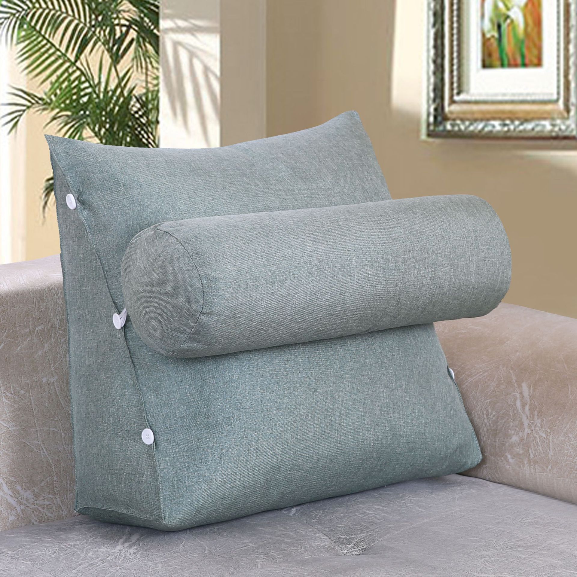 面料:棉麻面料,产品一个三角+一个圆枕组合一套销售,单独立拉链,有内胆 拆洗方便。