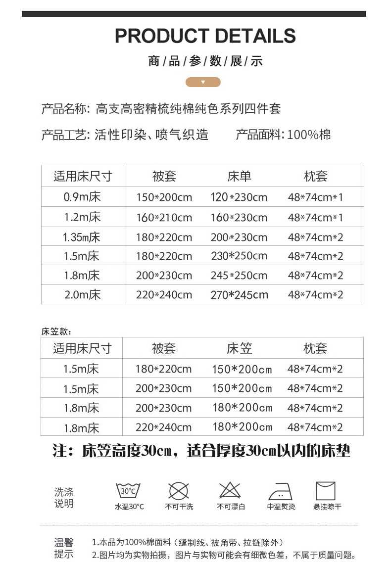 | 1.5m床笠四件套【被套180*220】 | ¥15900 | 500套可售 |