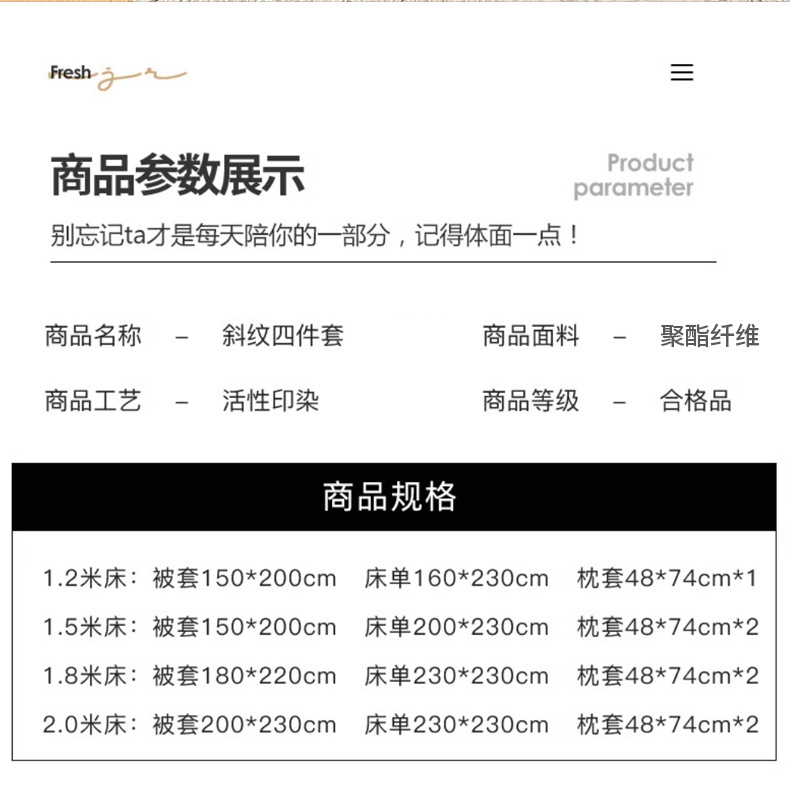 | 1.8米床【1被套+1床单+2枕套】 | ¥3600 | 999976件可售 |