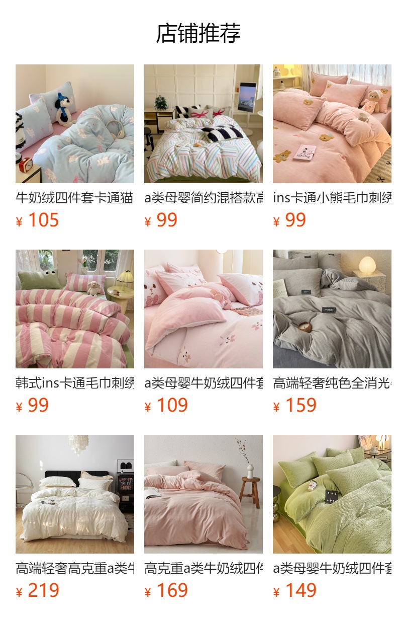 | 1.8m床/被套200*230cm /床单230*250cm | ¥15900 | 59套可售 |