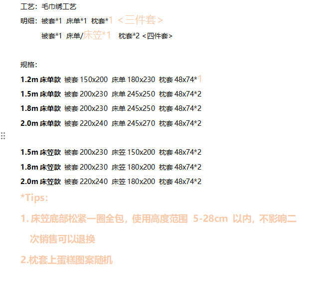 | 1.8床笠款四件套加大 | ¥29601 | 500套可售 |