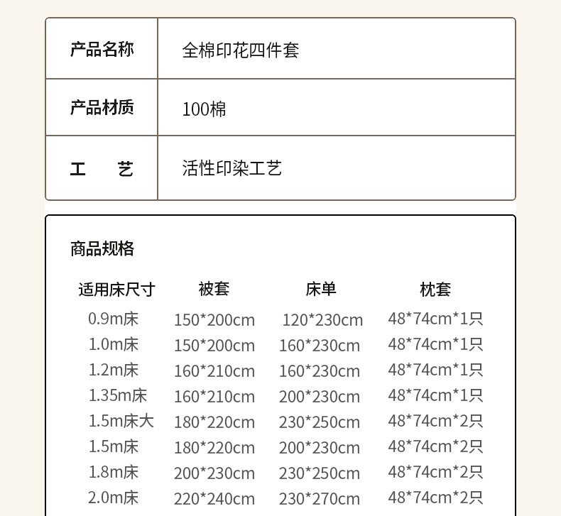 | 中号 床单款四件套-被套180*220 | ¥13200 | 1000套可售 |