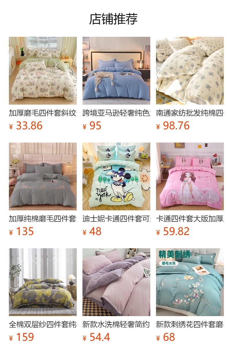 | 1.8m床单款四件套(被套180*220) | ¥4897 | 8600床可售 |