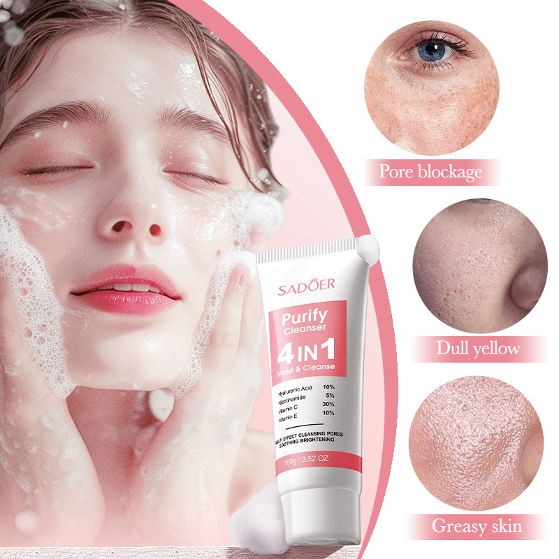 全英文四合一多效洁面乳 SADOER毛孔净化清洁洗面奶跨境外贸批发