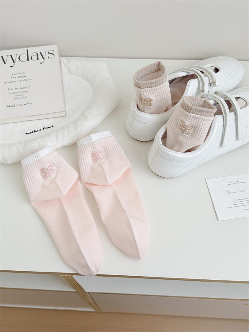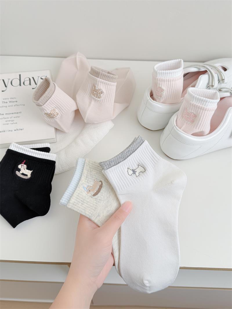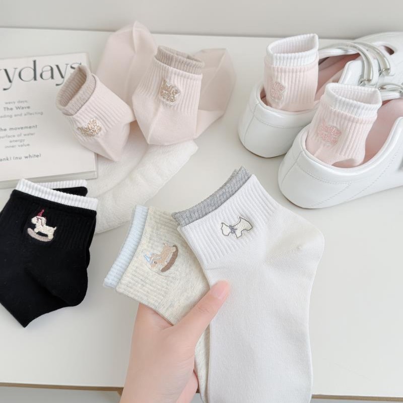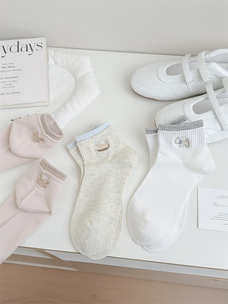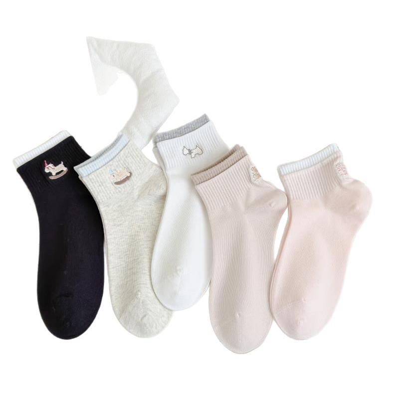26春秋日系浅色系刺绣女短袜子无骨软糯亲肤棉袜少女短筒袜女船袜