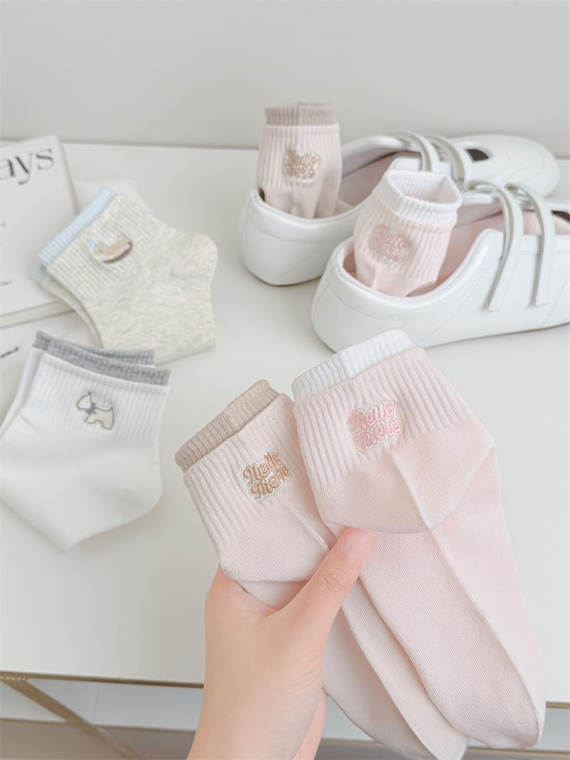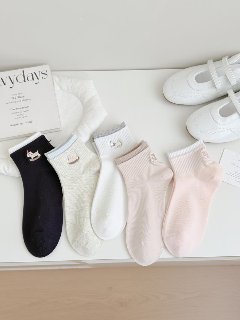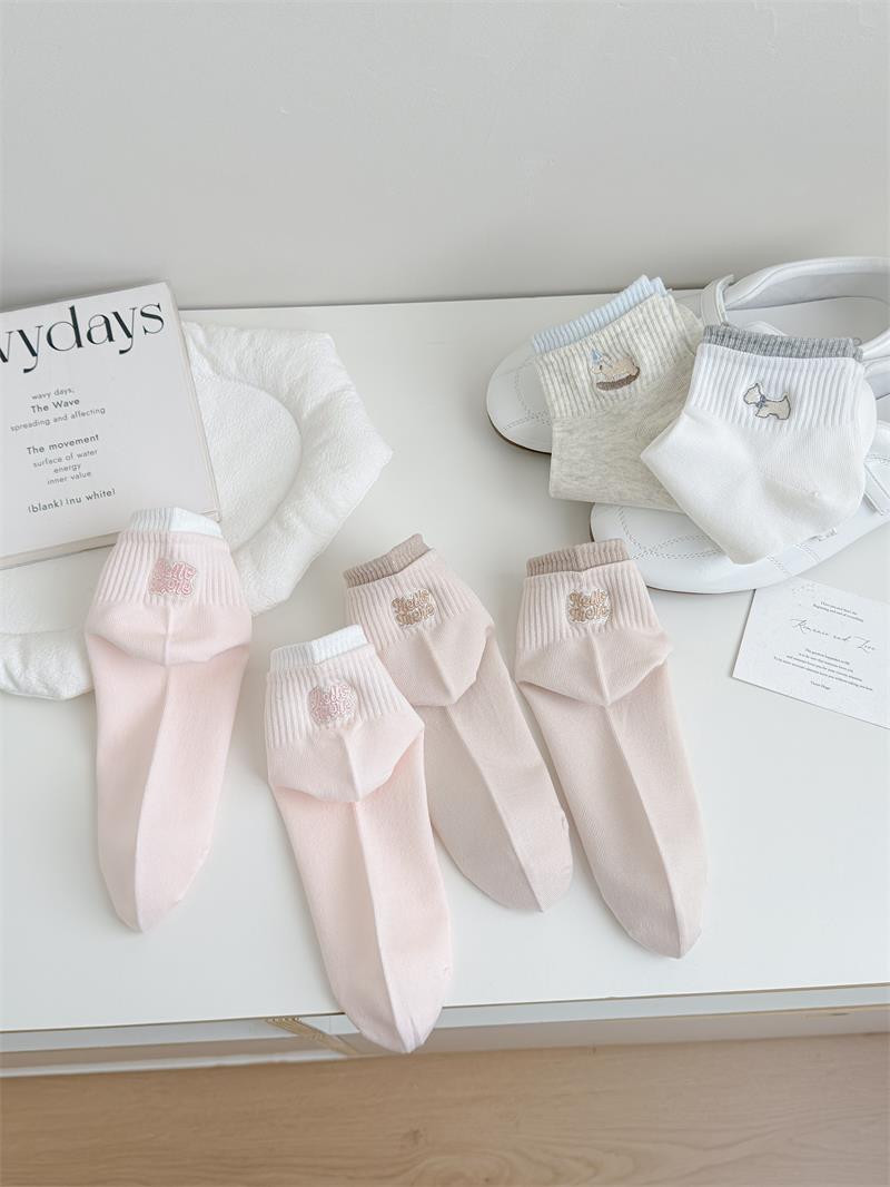 26春秋日系浅色系刺绣女短袜子无骨软糯亲肤棉袜少女短筒袜女船袜 English | 投诉